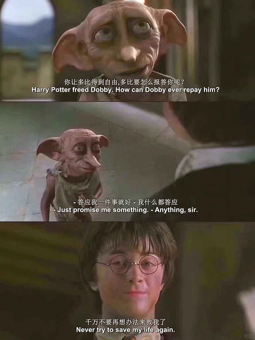 作为马尔福家的小精灵,多比没有黑化,是非分明,认定打败黑魔王的哈利,才是值得守护的救世主