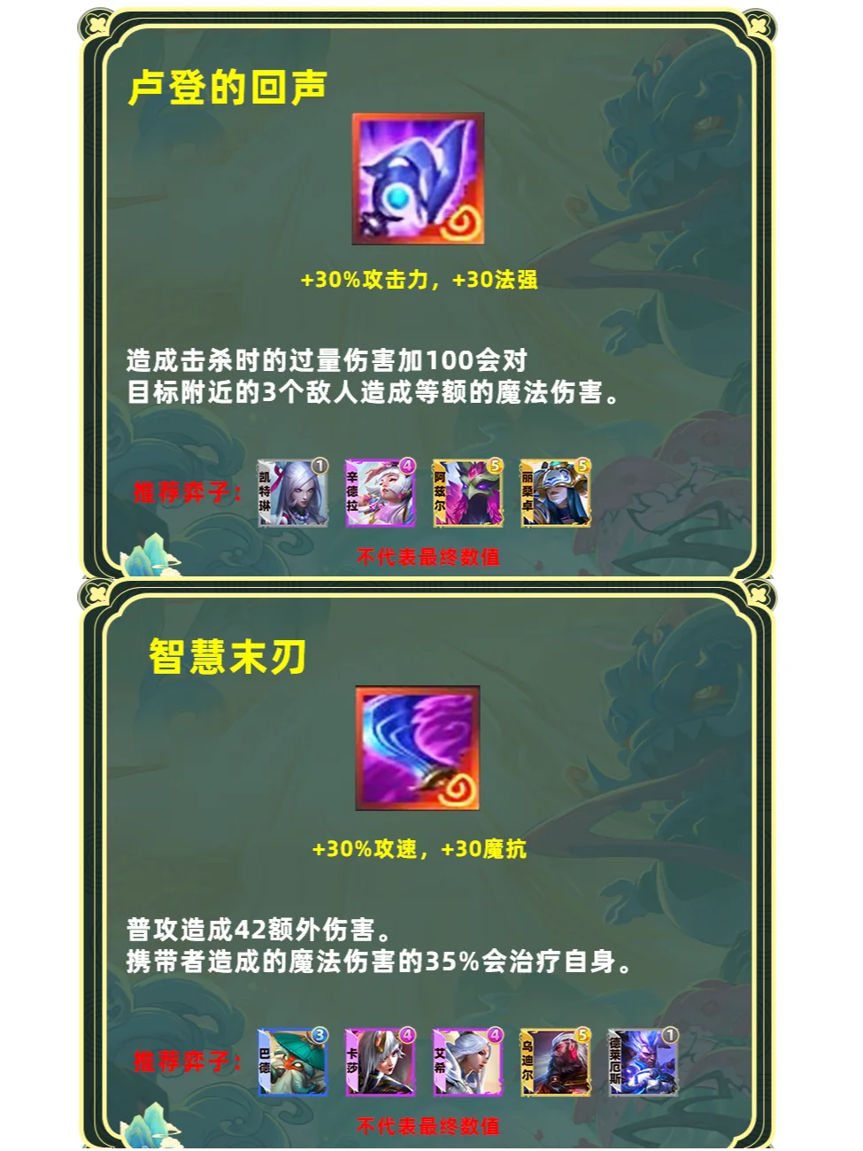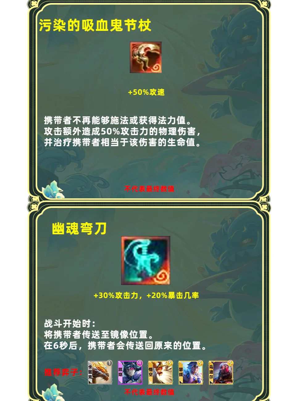 加强版单体小而致命。80%的攻速能完美取代羊刀/启动装的位置。而缩小体型和移速提升更适合战士单位。