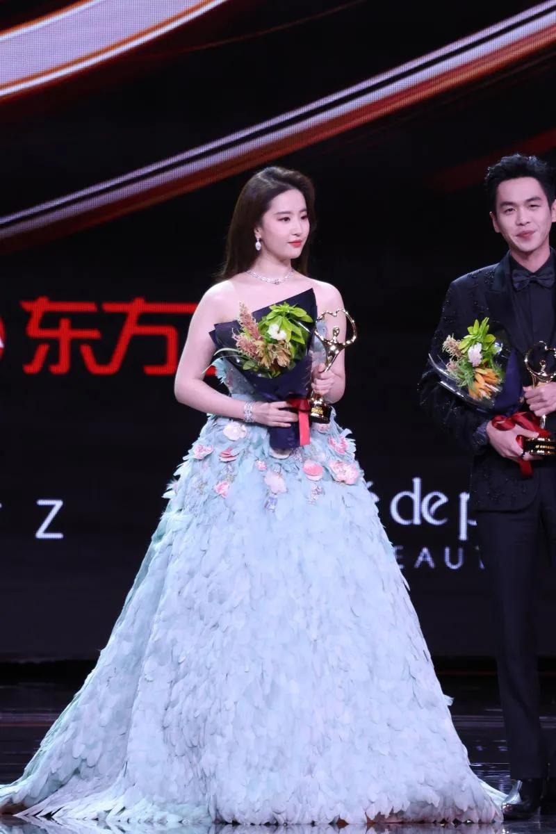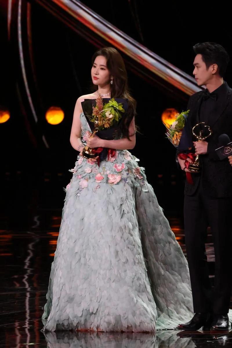 刘亦菲这一身衣服太丑了,用花挡住了才觉得好一点,全靠脸撑着