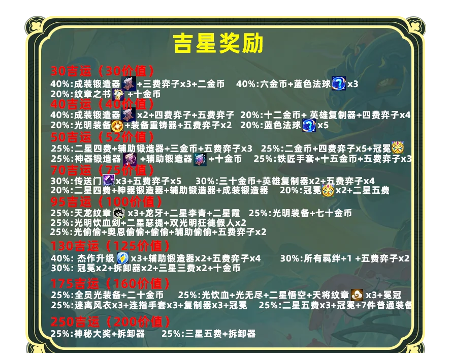 由于之前吉星奖级中吉星转奖励削弱,7/9吉星非常难达成,很难吉星玩到底。