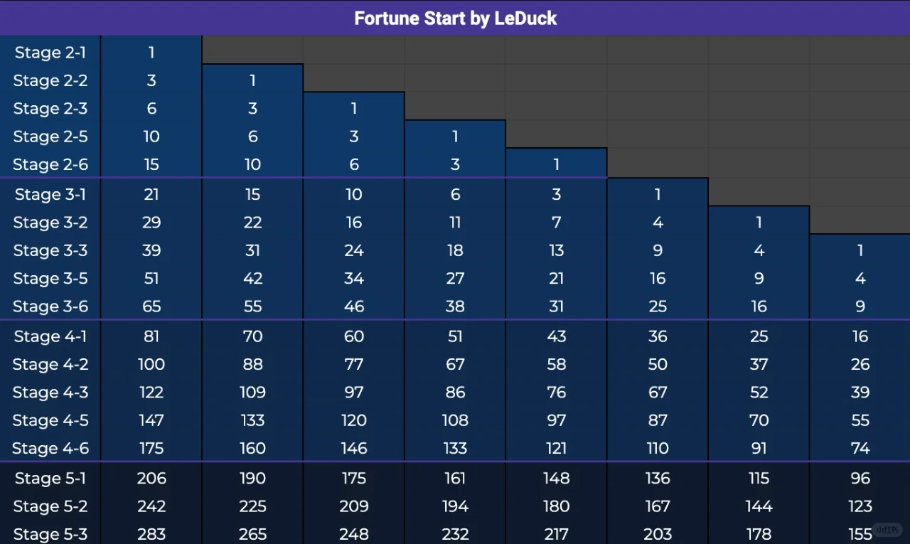 宝子们可以对照下图表格,例:2-1开出吉星,想吃到95层奖励需要连败12回合,并且骰子刚好开奖。