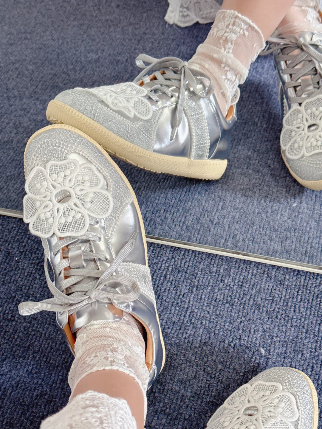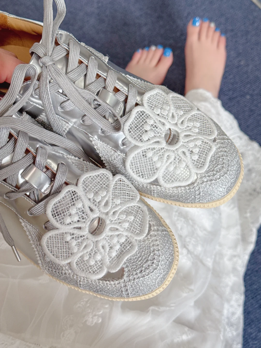 德训鞋 板鞋 鞋控的日常 最百搭的鞋 蕾丝 液态金属银