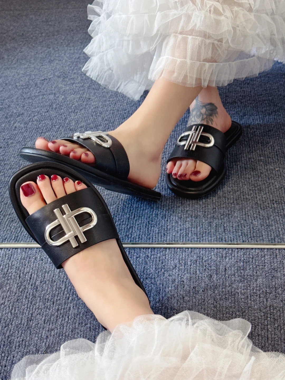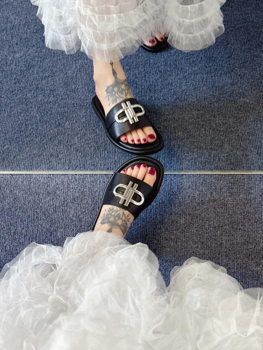 穿拖鞋的感觉太爽了,皮鞋根本比不上!黑白配长裙,拖鞋也能穿出高级感~