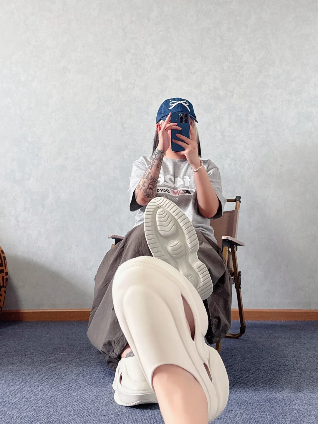 夏天就要简简单单 穿不腻的长裙配T恤 DASHTWO的月步鞋 运动感很强 厚底增高不累脚 出游踩水也不怕 搭配工装裙YYDS!
