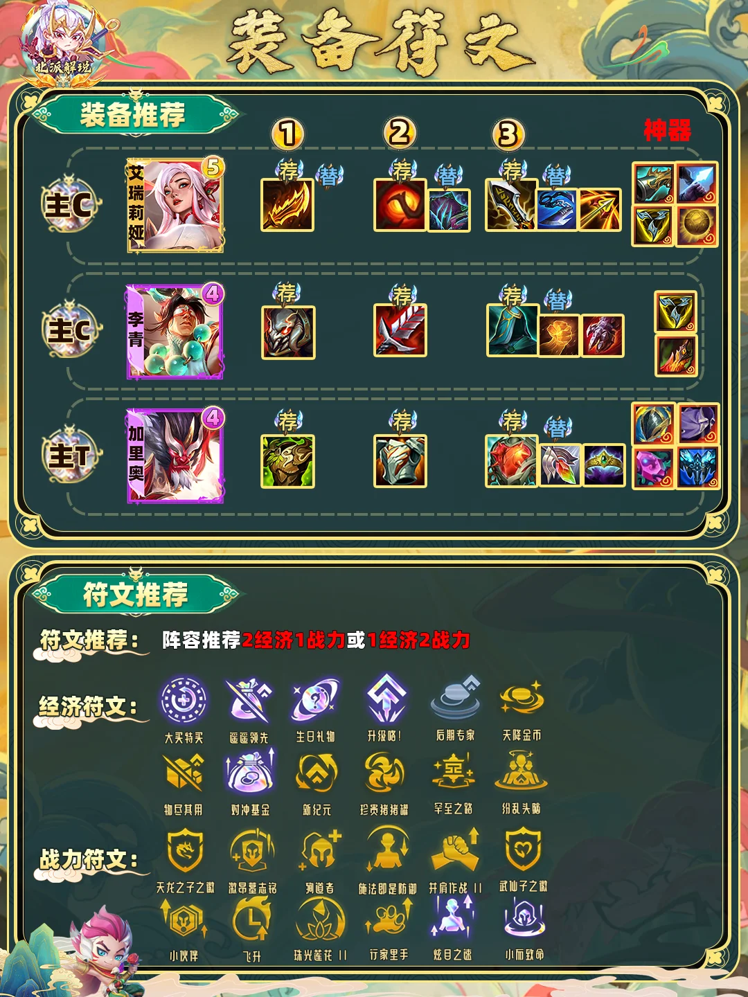 三:开局拿到彩色经济速九:【大买特买】【遥遥领先】【生日礼物】【升级咯】等经济符文。