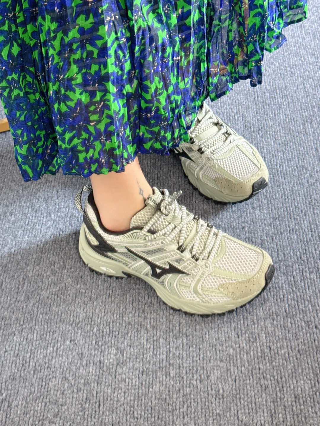 这双复古跑鞋配碎花裙真的绝了?!日常休闲穿应该很舒服吧?