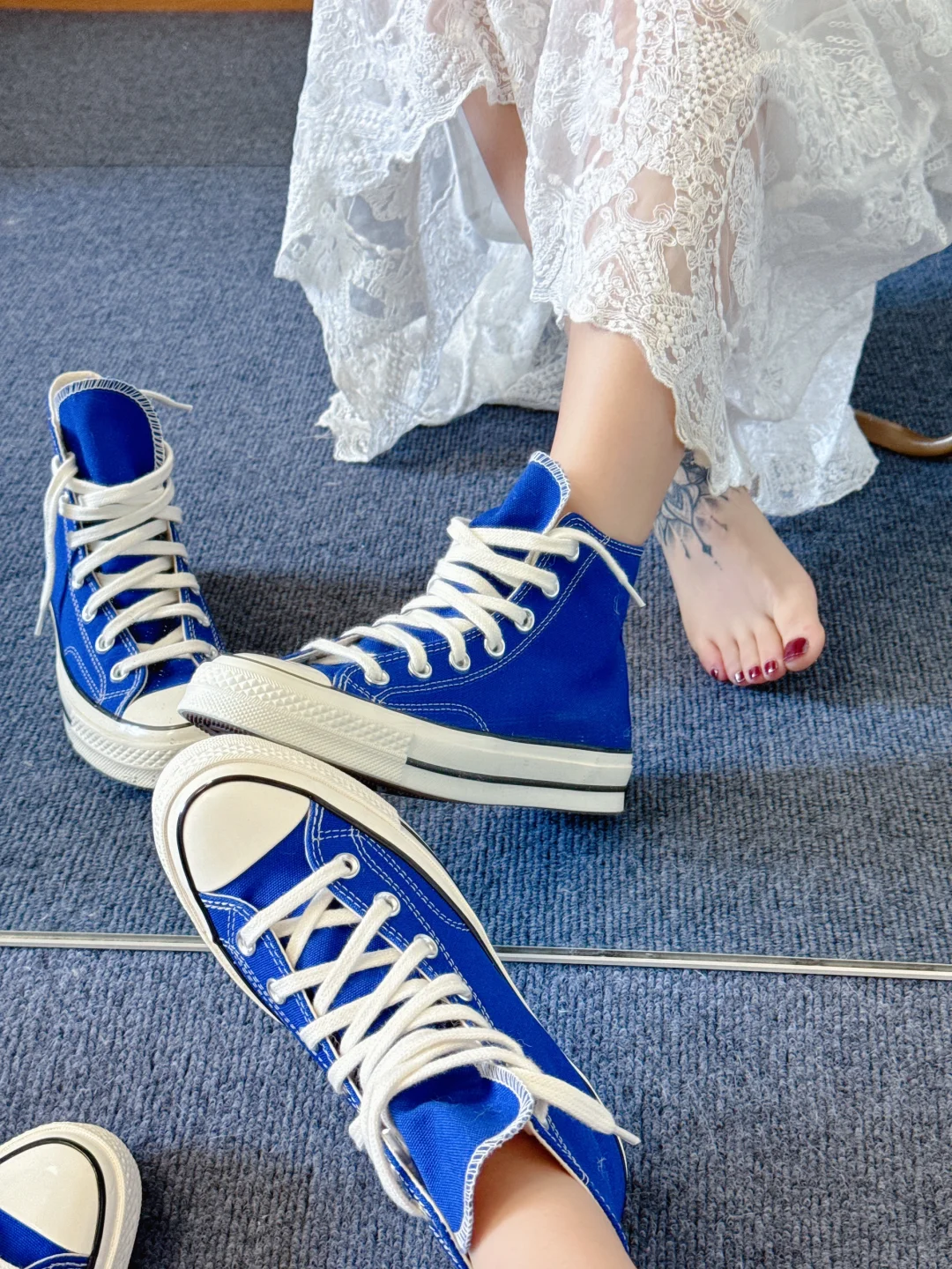 帆布鞋 高帮鞋 高帮帆布鞋 鞋控的日常 最百搭的鞋 板鞋 乘风破浪的姐姐同款 蓝色