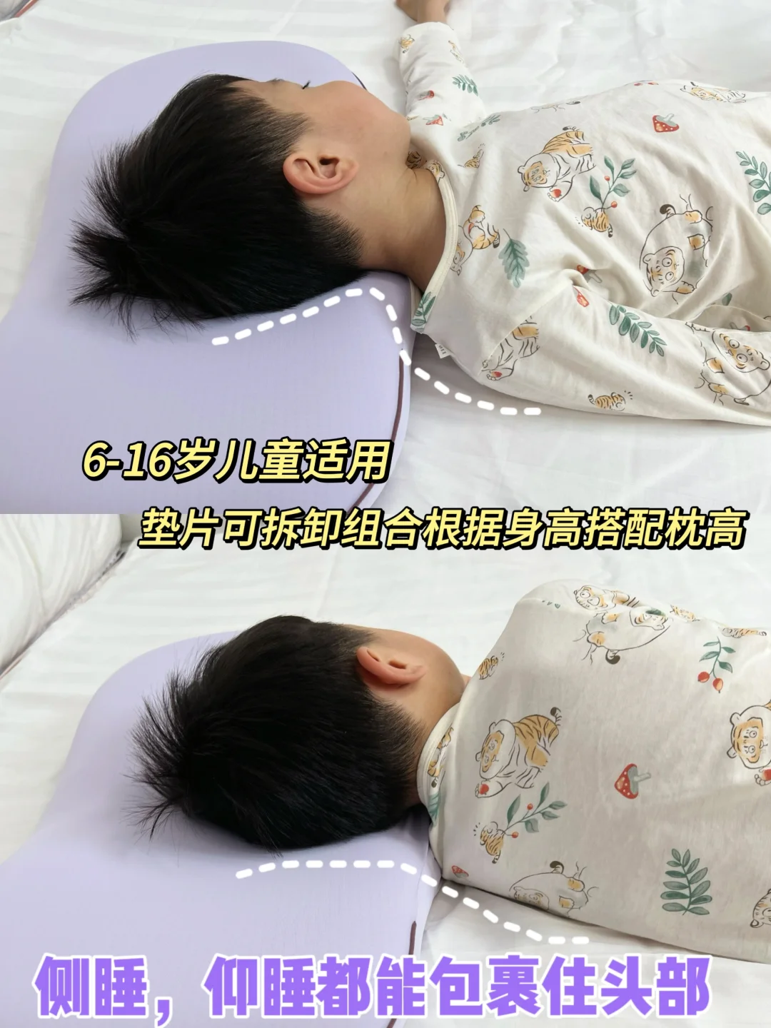 枕头根据孩子的不同年龄段而设计,像我们家哥哥现在用的是大童款,😘适合6~16岁,一个枕头足足用10年,太省钱了👏~到手枕头有1个主枕芯,2个枕芯垫片,哪怕小孩身体长得猛快,妈妈也可以组合枕头垫片个孩子调整舒适的枕头高度。😊