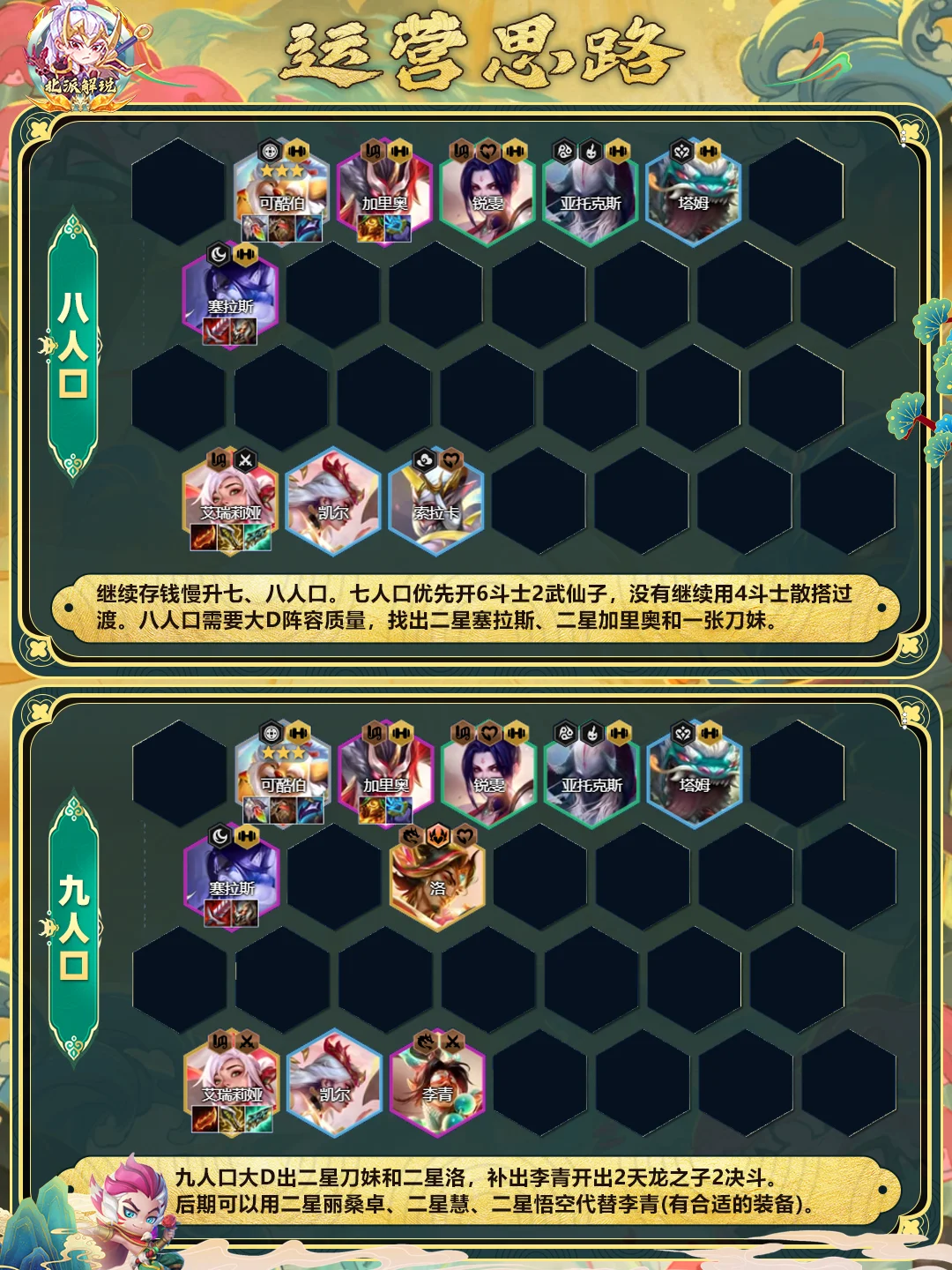 武仙子转(不可合成):转职给到塞拉斯。下掉李青用奶妈开出4武仙子。武仙子可为全队提供双抗,是高血量斗士最需要的属性。