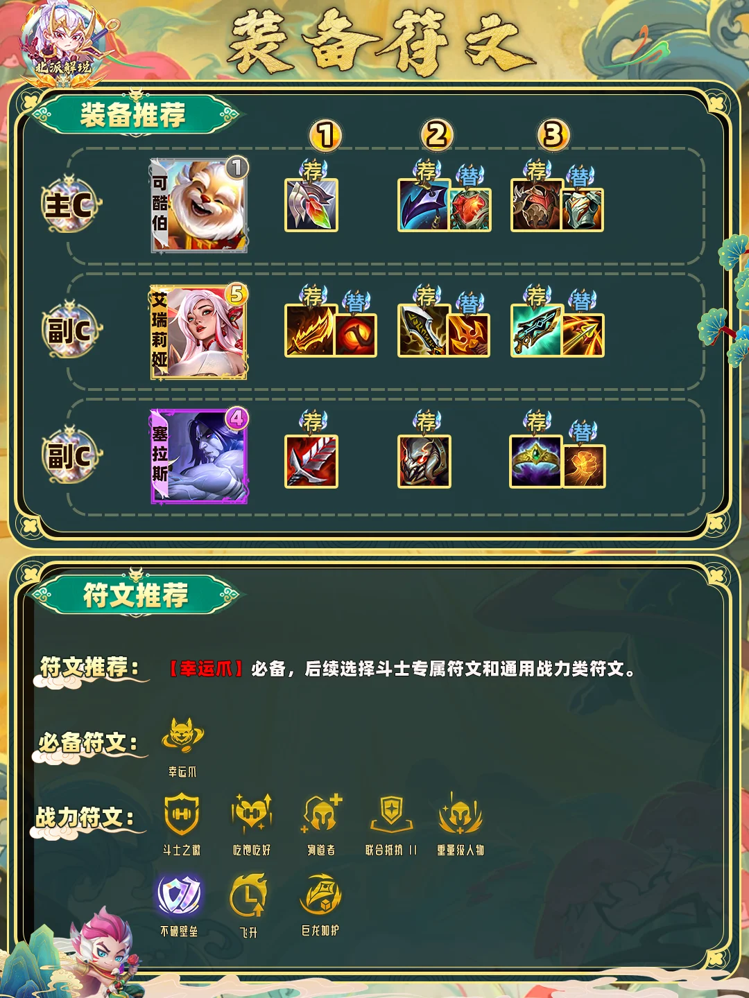 三:拥有幸运爪直接提供二星可酷伯,搭配开局野怪嫖卡,这也是能快速三星的必要条件。