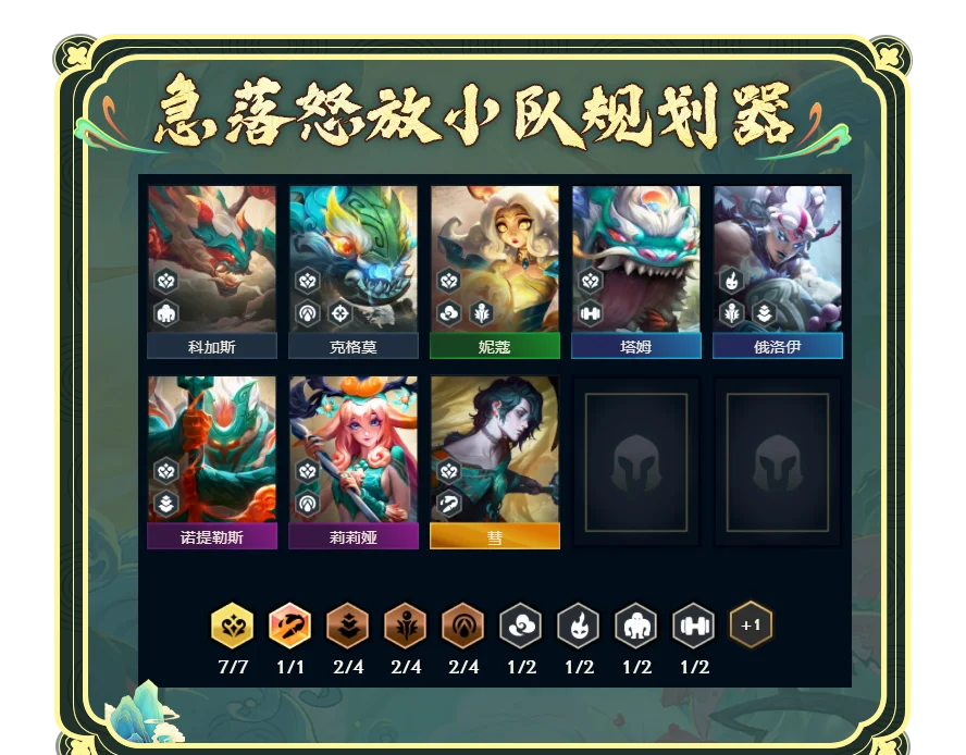 青花瓷转:转职给到妮蔻(装备替换泰坦)。阵容变阵为妮蔻+拉克丝+俄洛伊+阿木木+泰坦+瑟提+丽桑卓+慧。组成4法师4护卫4青花瓷3山海,妮蔻和拉克丝追三。
