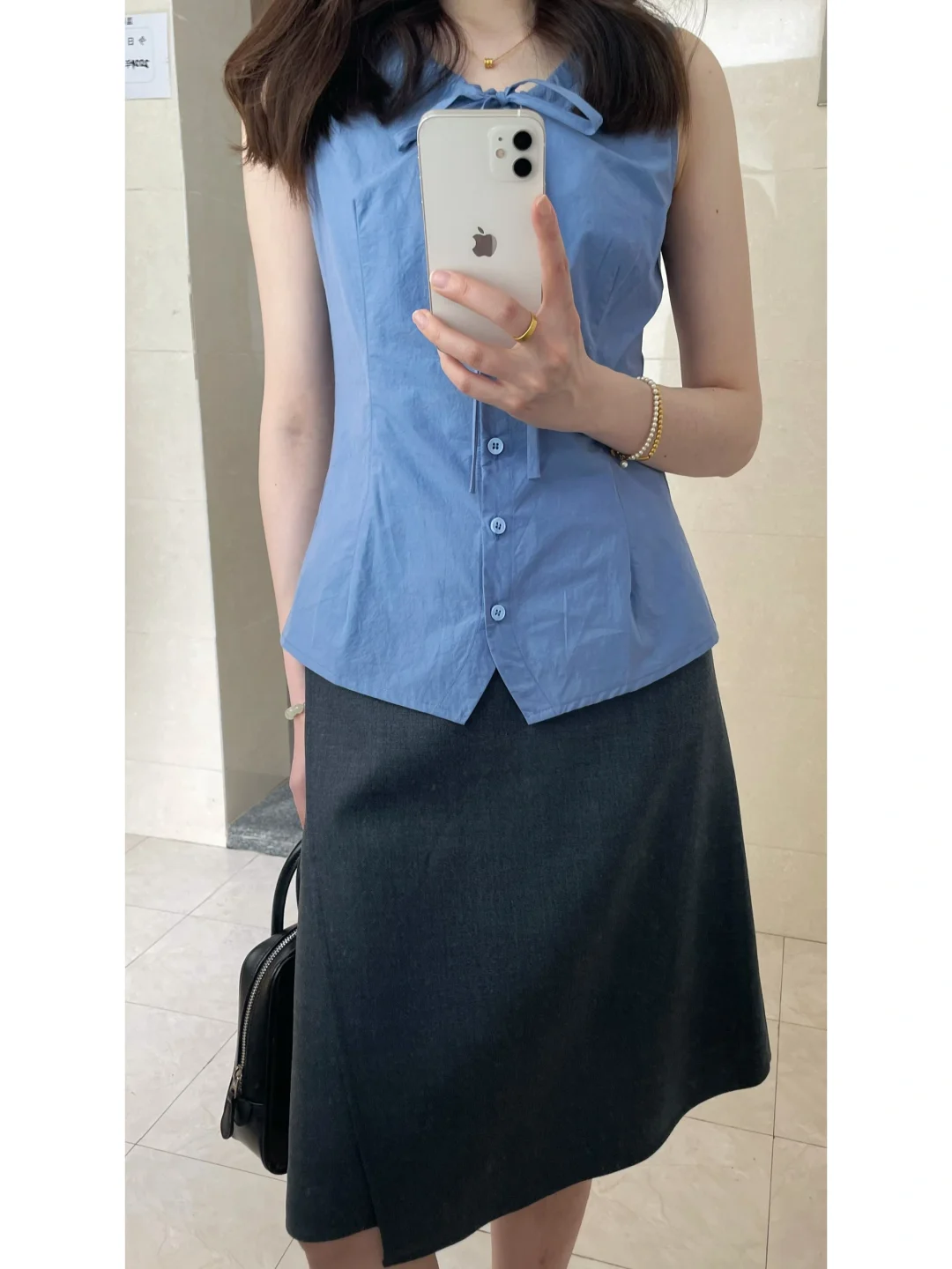 蓝色V领连衣裙简直是高端女神范儿的标配,商务场合穿它气场直接拉满!束腰让身材