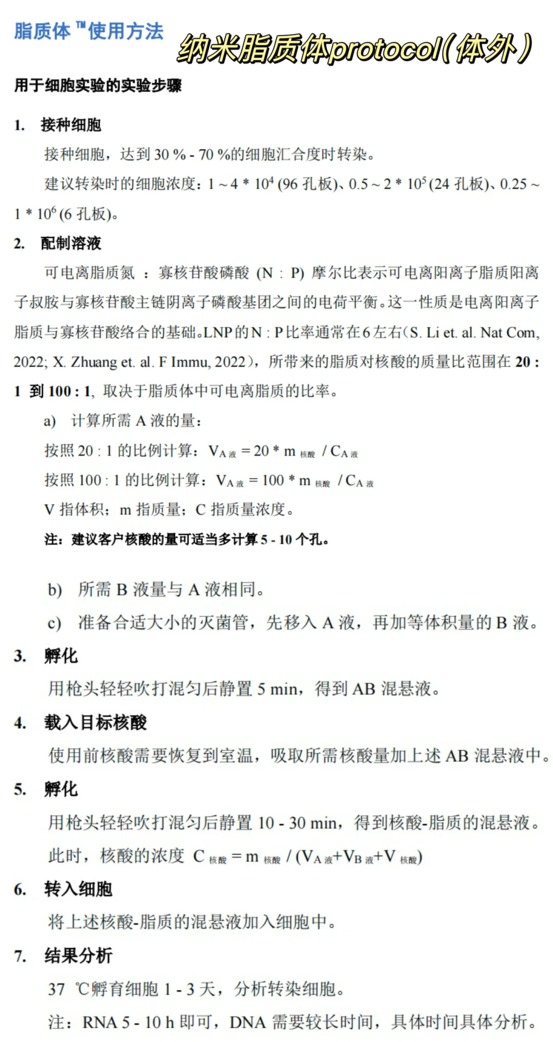 好多宝问我核酸转染相关的问题,sirna,mrna,质粒等…protocol在图2。🌱