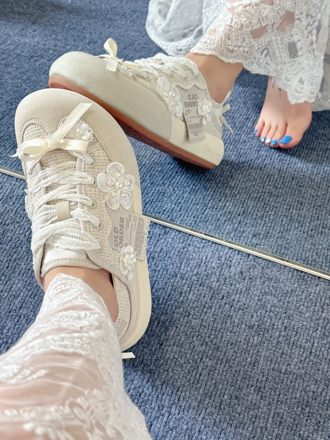 今天蕾丝鞋配蕾丝裙