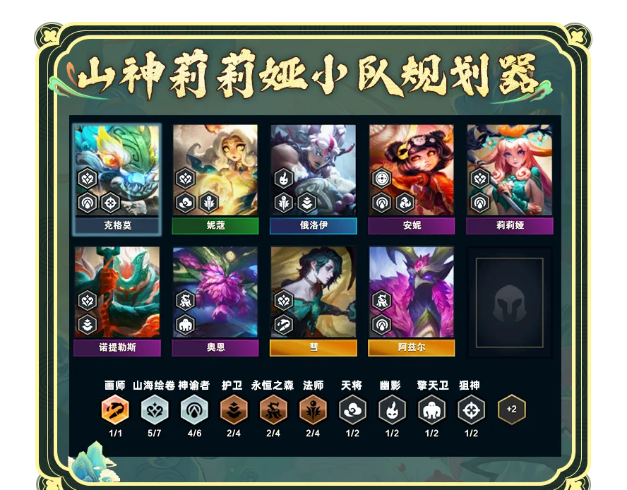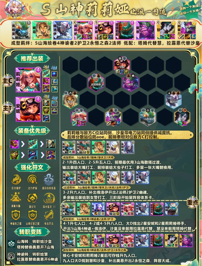 神谕者转(不可合成):转职给到慧,拉露恩替换奥恩开出5山海绘卷6神谕者2护卫2法师。