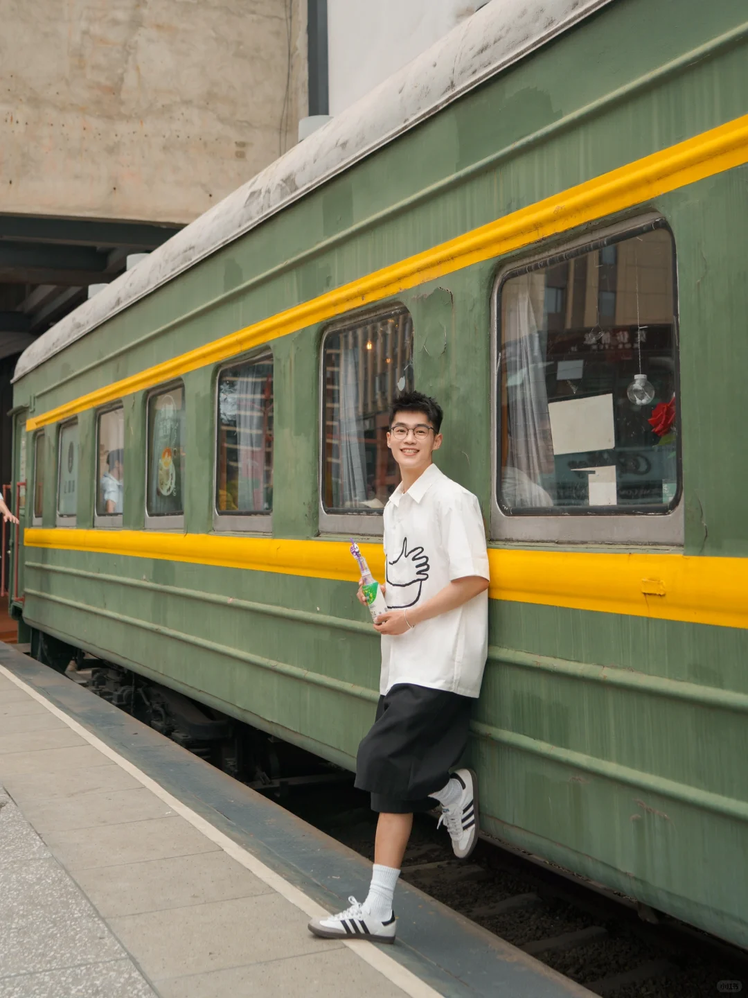火车头广场也太好拍了吧!绿皮火车和东方红号火车头真的超级复古,感觉自己穿越回了上个世纪。必须打卡