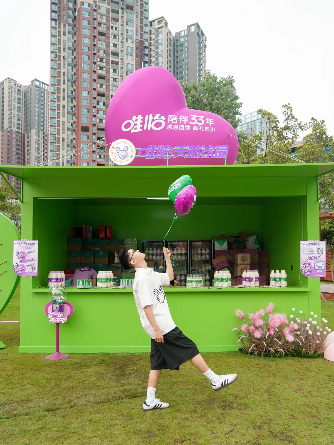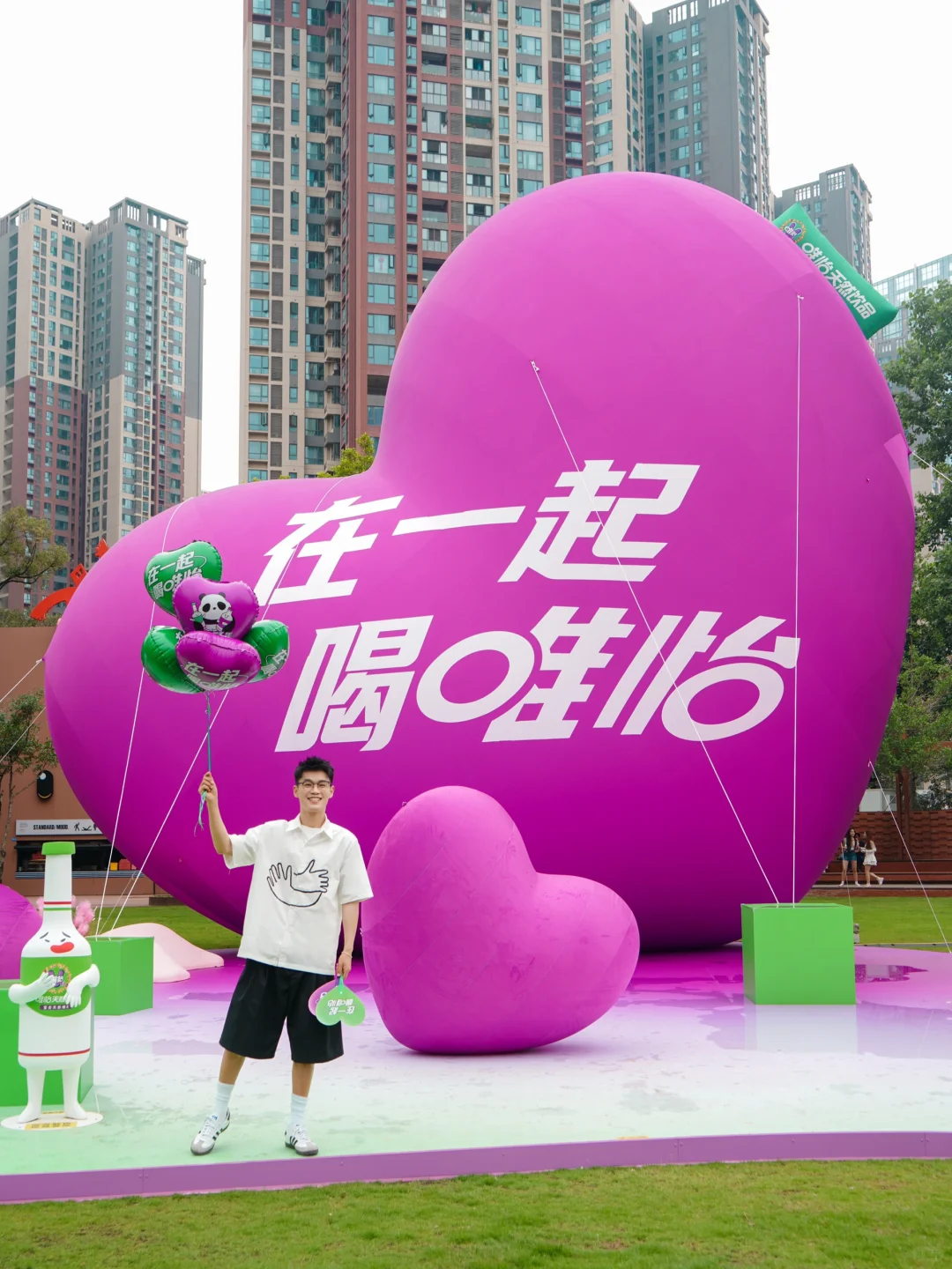 5⃣ 东北门的草坪上一颗巨型的紫色爱心装置,果然唯怡是懂成都人的浪漫的!拿上一瓶还能作为拍照道具,边走边逛边拍~
