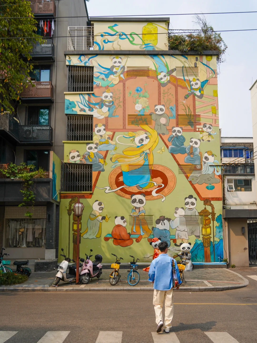 这里的一栋整楼熊猫涂鸦墙很适合拍照打卡!