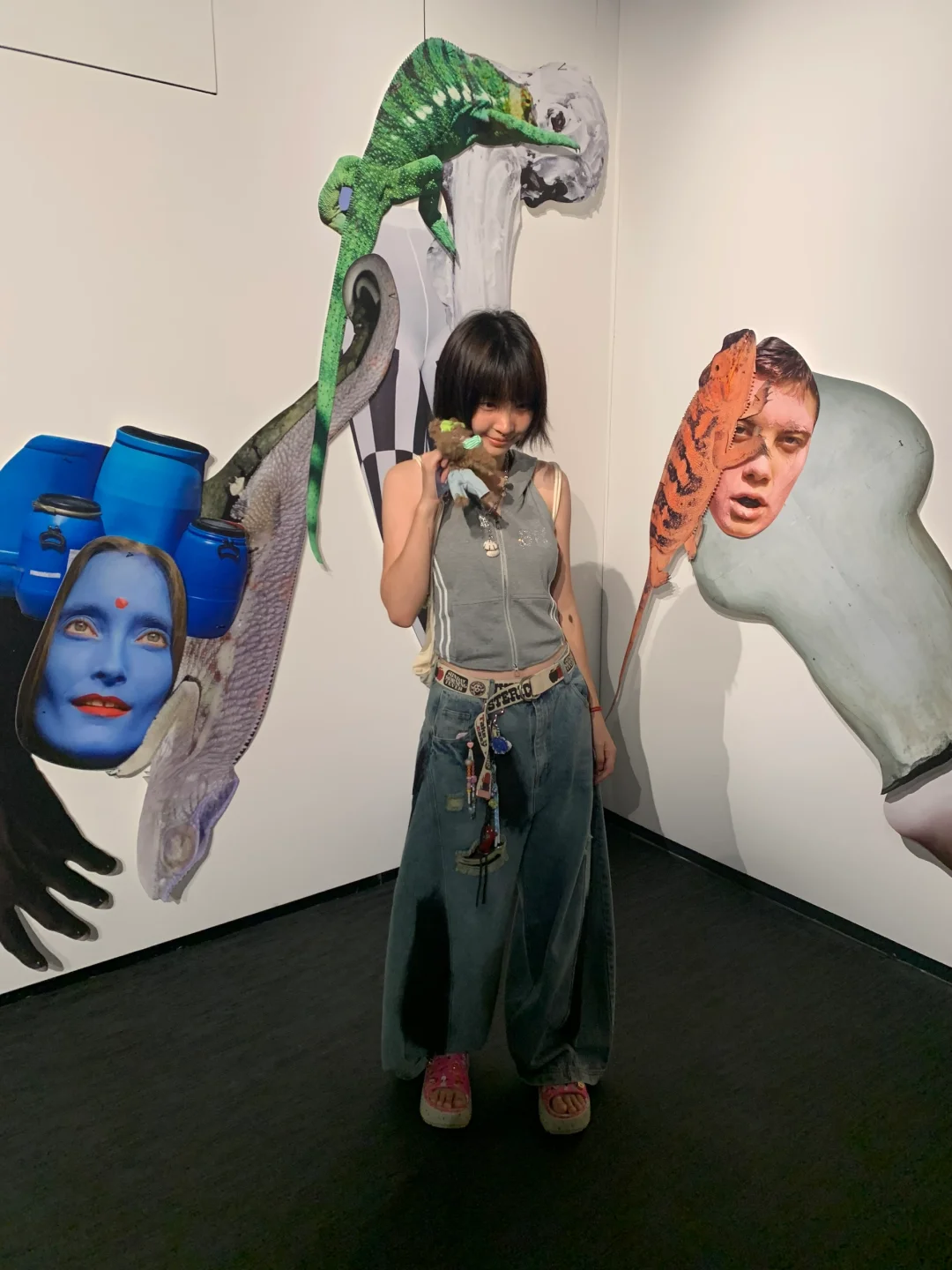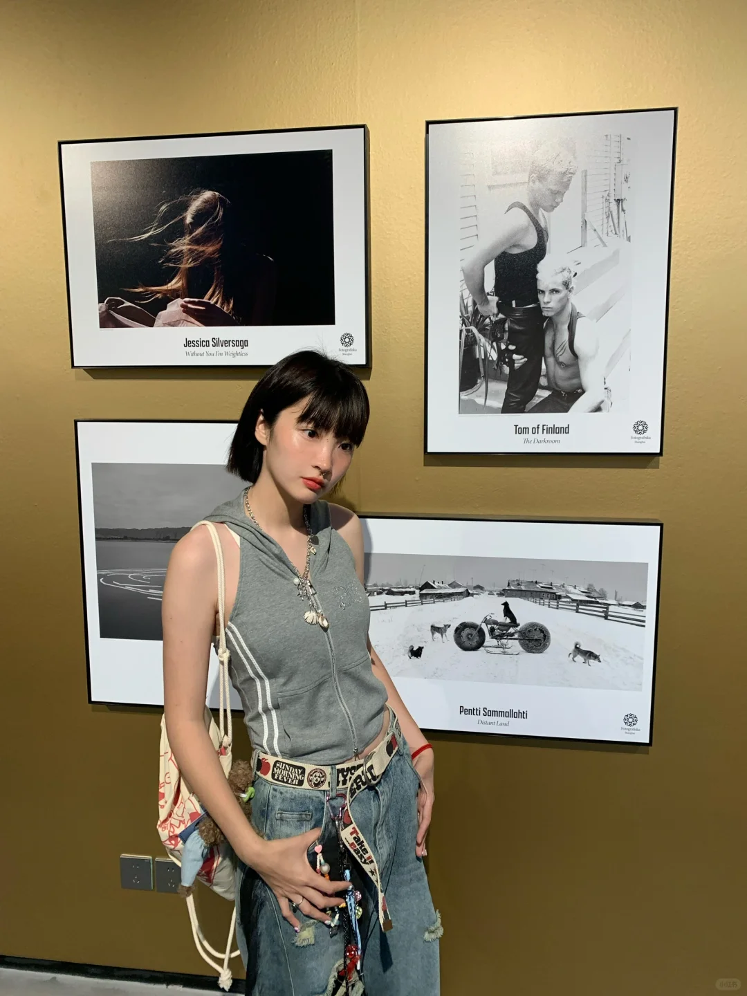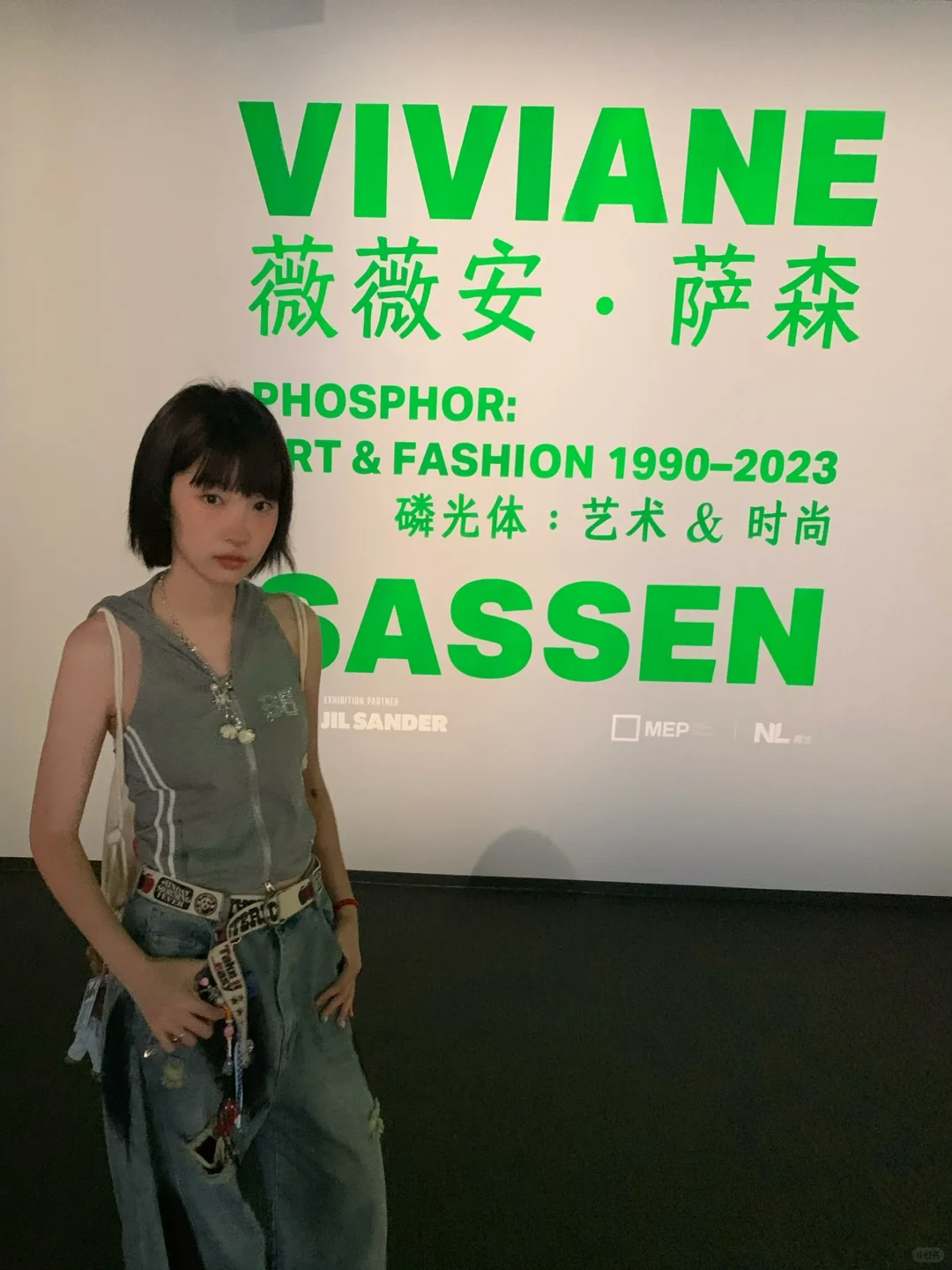 看展拍照 当代艺术 短发 短发女孩植物系穿搭