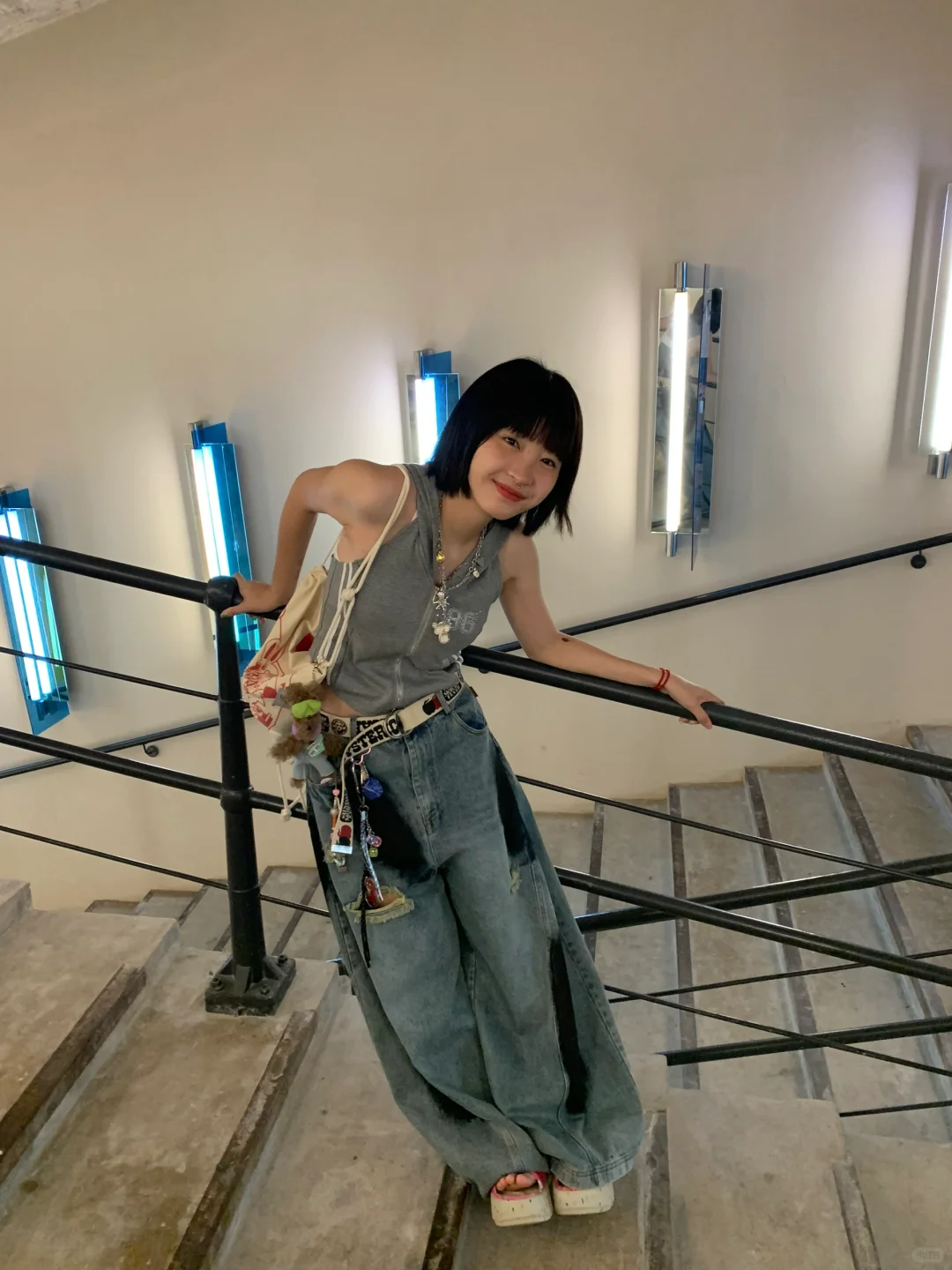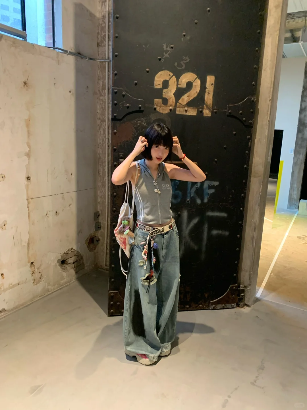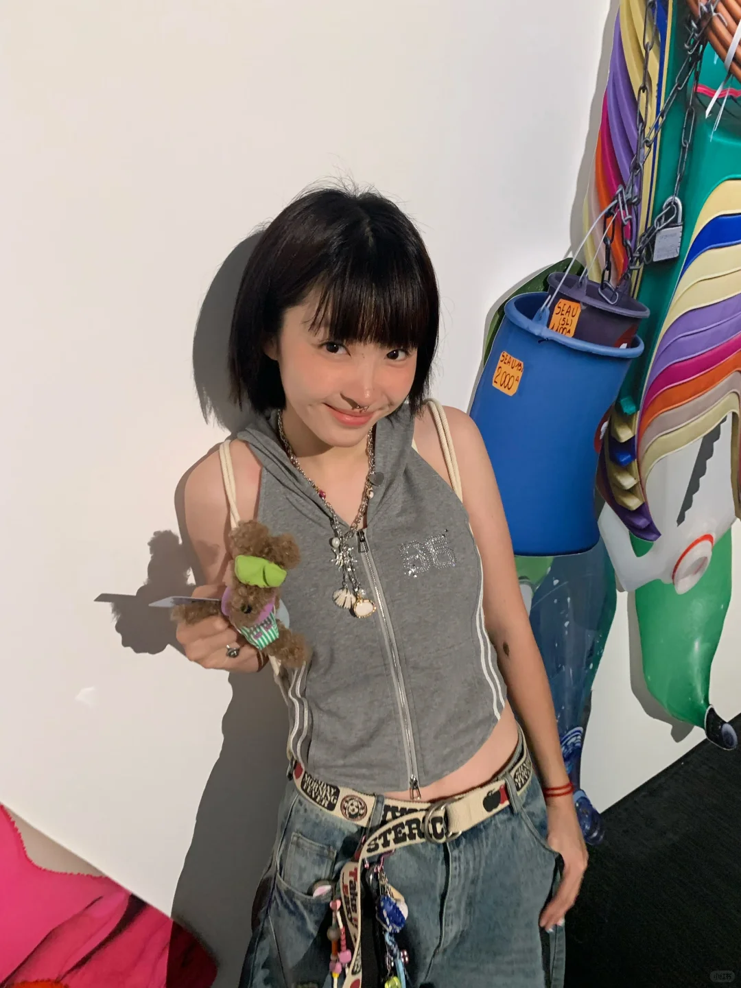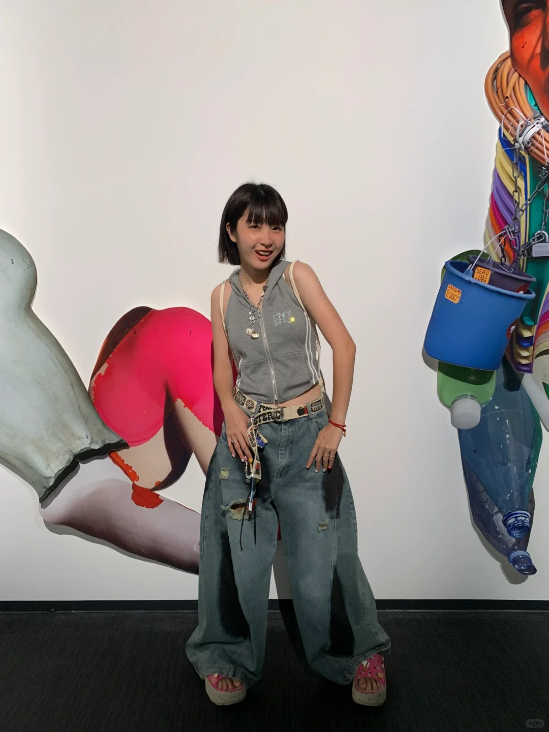 看展拍照 当代艺术 短发 短发女孩植物系穿搭