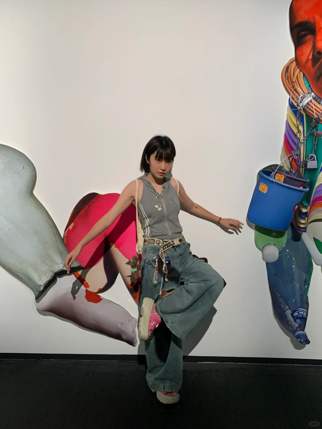 这小萝莉是来看展还是来拍照的?这pose摆得比艺术家还会抢镜啊
