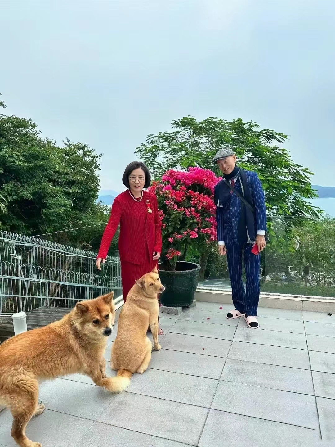 75岁汪明荃和老公罗家英一起遛狗的欢乐场景。镜头下,汪明荃身穿一套喜庆大红色连衣裙,脖子上戴着珍珠项链,优雅大方、尊贵非凡;老公也是身穿西装,面带笑容。不过二人都穿着便捷的拖鞋,看上去怡然自得,闲适自在。 二人于2009年在美国拉斯维加斯注册结婚,结束了长达21年的爱情长跑。婚后两人相濡以沫,互相扶持。如今两人虽然已经年逾七十,但精气神十足,看上去温馨幸福!