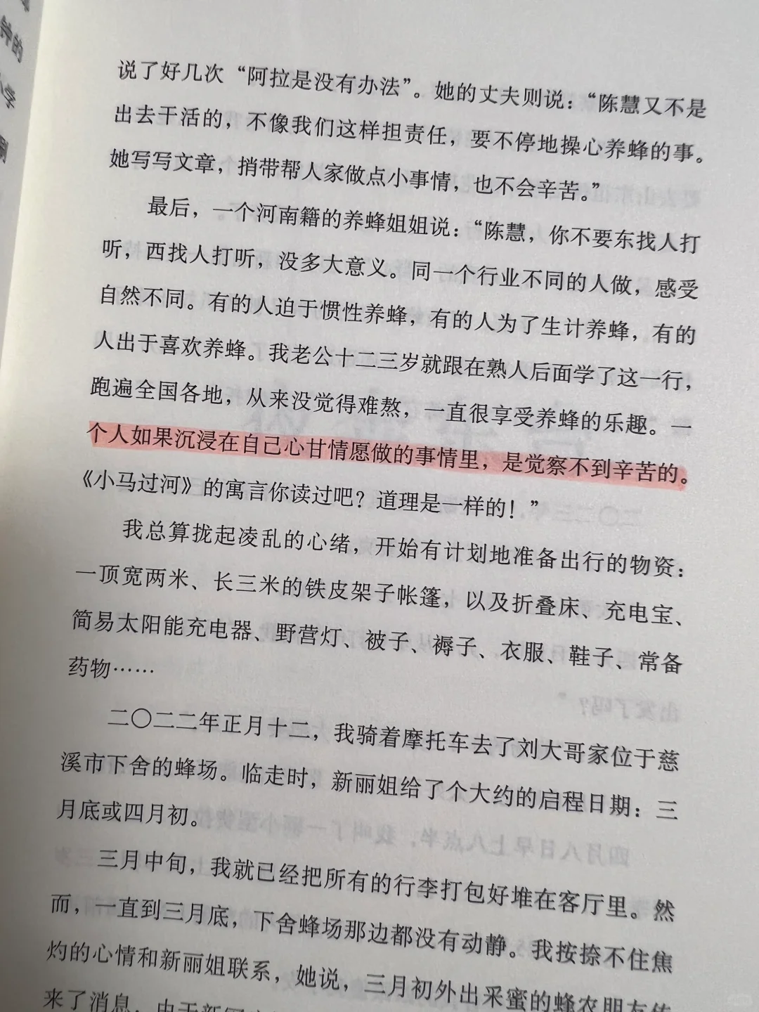 散文书写了蜂农的生活,一路追花的所见所闻,“追花”不一定是充满诗与远方的玫瑰幻想生活,当离开原本的生活轨道,拥有不一样的旅程,会更真切的感受到世间美好
