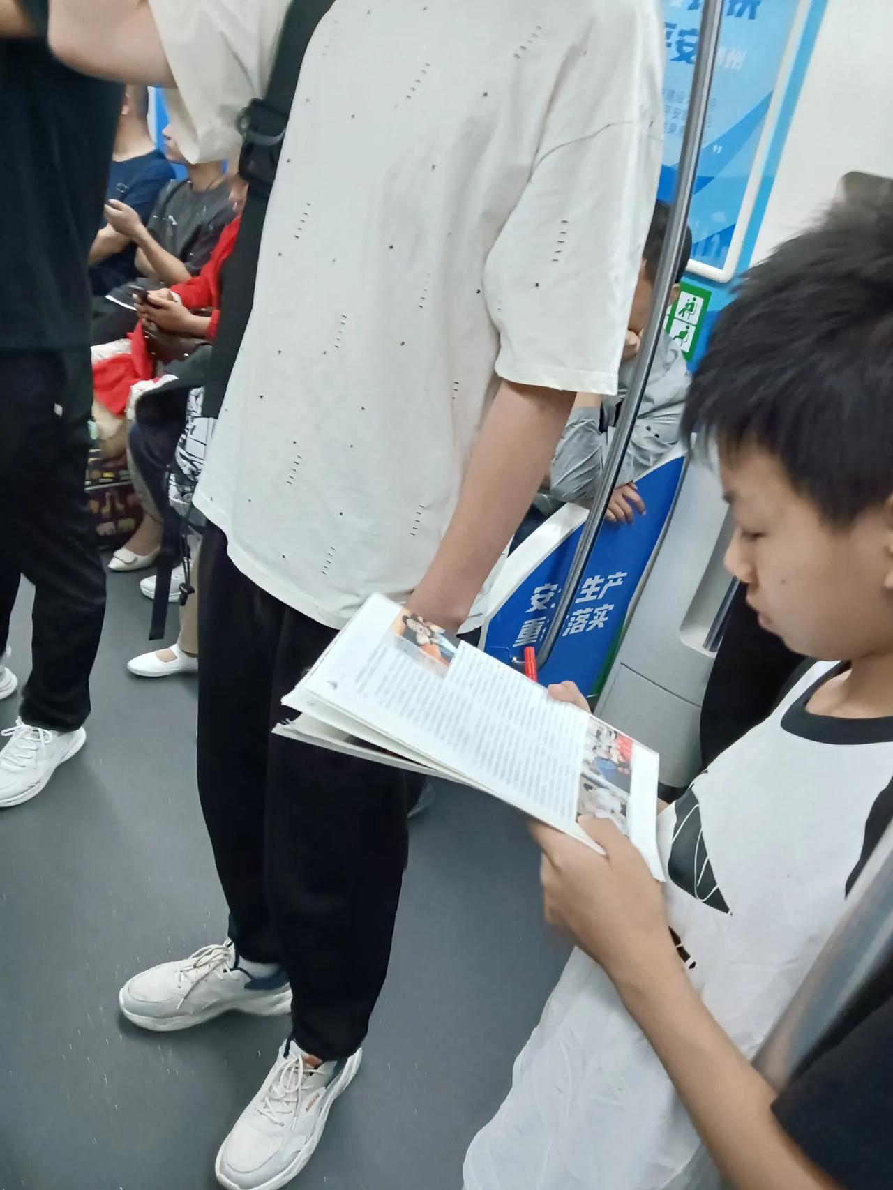 少年可畏!在熙熙攘攘的地铁上,唯有你静如处子,那么安静,那样专注,你是人群中最靓