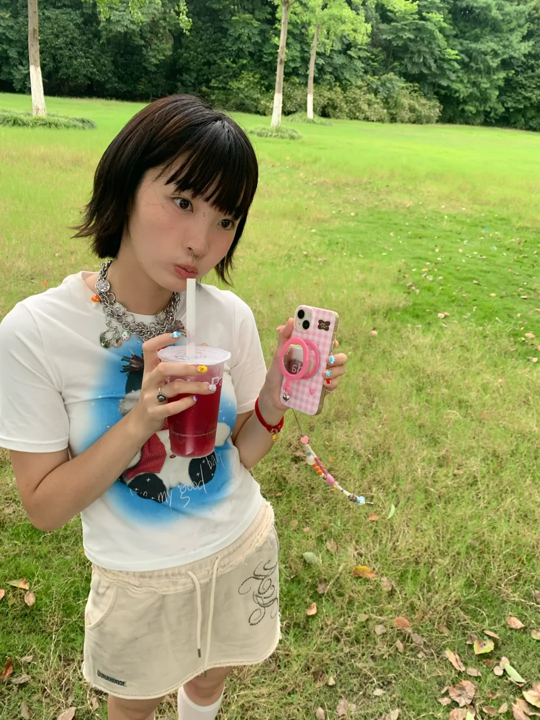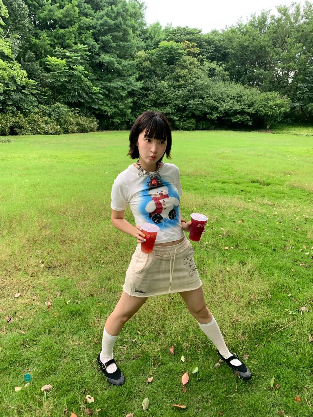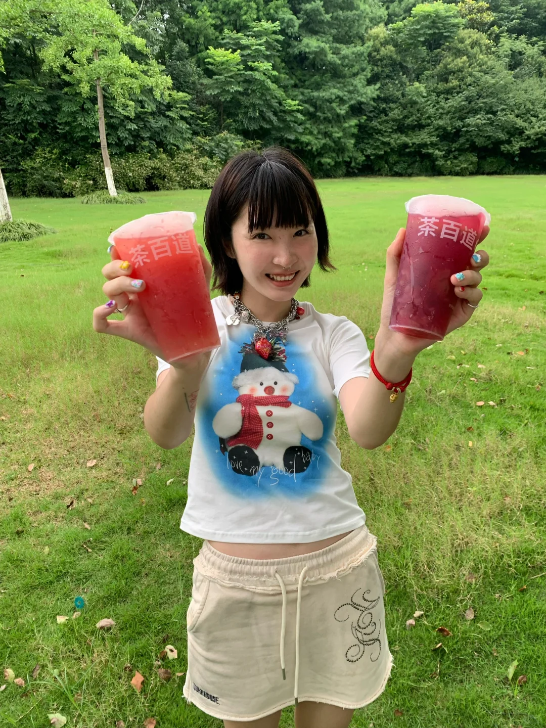 这年头,水果都有味道了,女孩们得加把劲了!短发配植物系,长腿细腰,夏天的清爽标配啊~