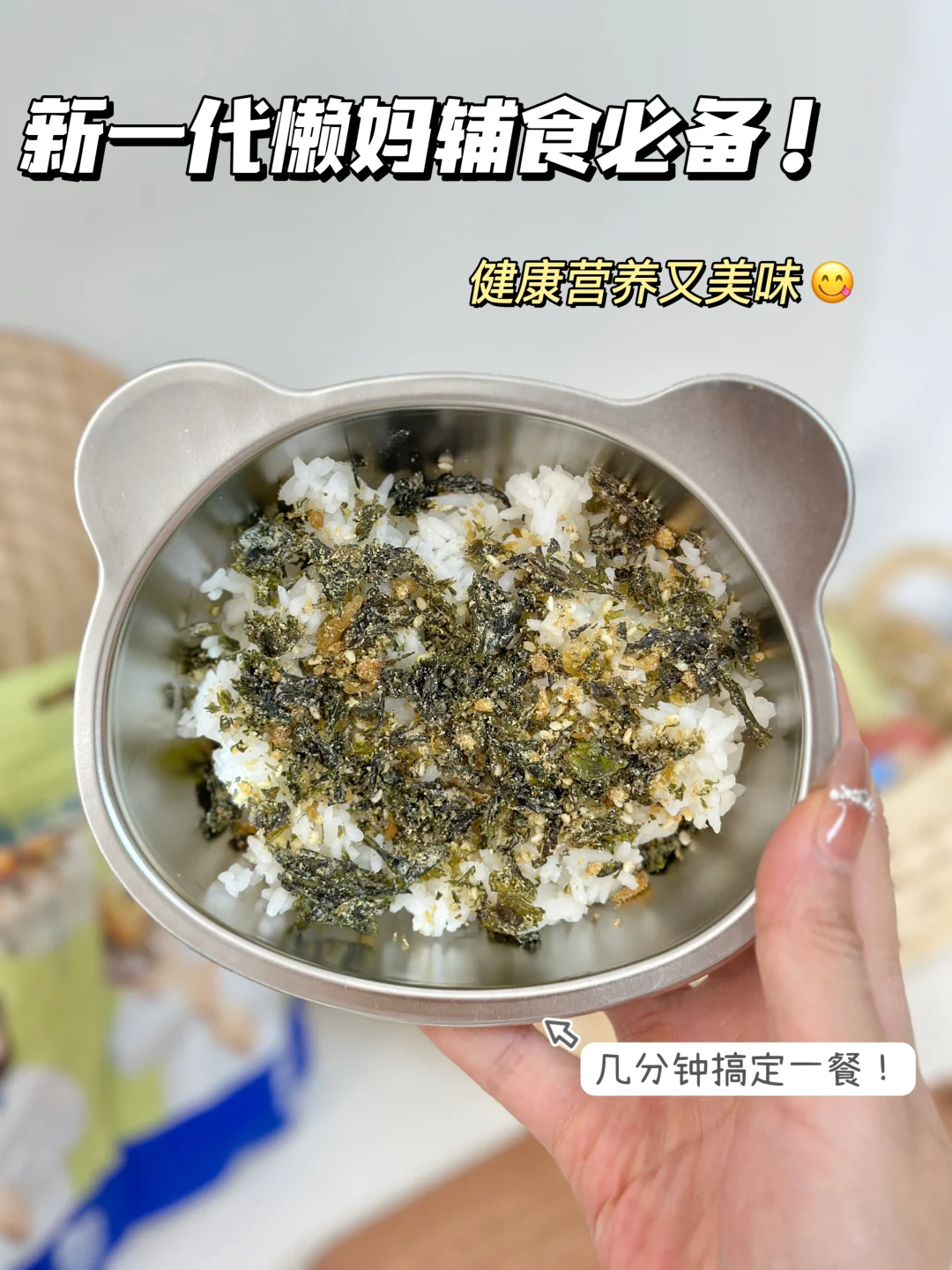 原来闺蜜每次做完饭都给娃加上奶酪博士的高钙奶酪海苔肉松拌饭料…