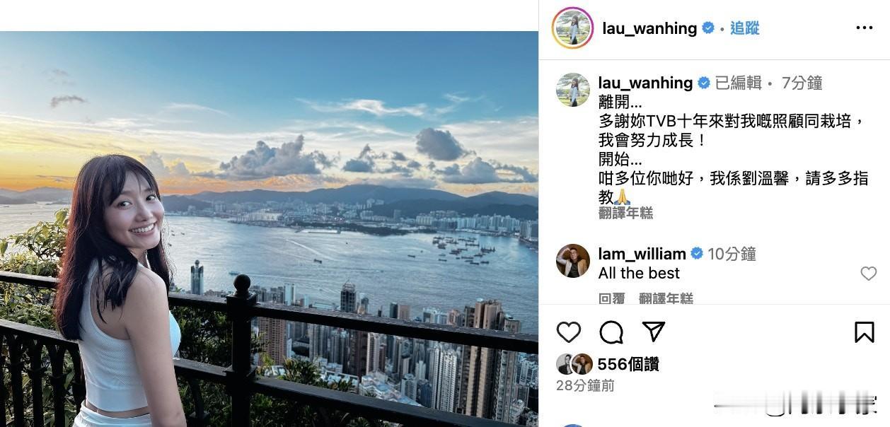 💖33岁TVB小花刘温馨宣布离巢:多谢你十年来对我的照顾和栽培! 💖现年33岁的无线(TVB)小花刘温馨(Virginia)今日(11日)宣布离巢。她在社交平台上发文道:「离开..多谢你十年来对我的照顾和栽培,我会努力成长!开始…咁多位你们好,我是刘温馨,请多多指教」。 💖她又晒出背心靓相,相中蓝天白云,她笑容满脸,似乎心情大好。刘温馨2013年参选港姐获得第四名,入行后效力TVB逾10年,曾拍过《白色强人II》、《香港爱情故事》、《宫心计2深宫计》等剧集。#夏日生活打卡季#