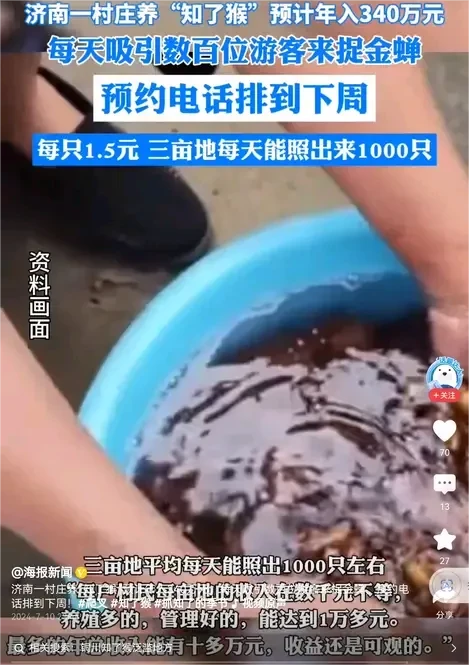 第一次听说知了猴也可以养殖,看来科学是无所不能的。这也是一条致富之路啊!只是不知道知了猴是怎么养的?难道知了猴也可以在院子里养吗?真的搞不懂。 山东的一个村庄,现在靠养殖知了猴致富了,据说他们在三亩的土地上,每天能照出来1000多只。我只是不太懂他们是怎么把知了猴种到地里的?