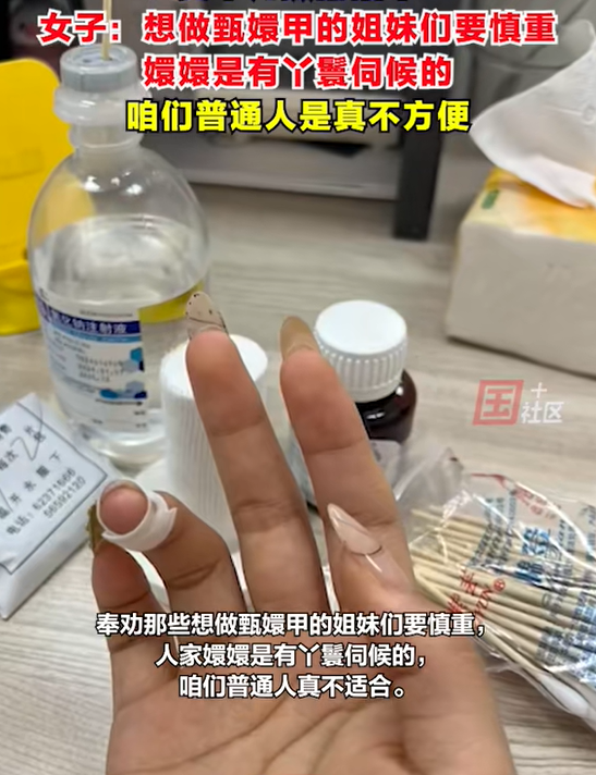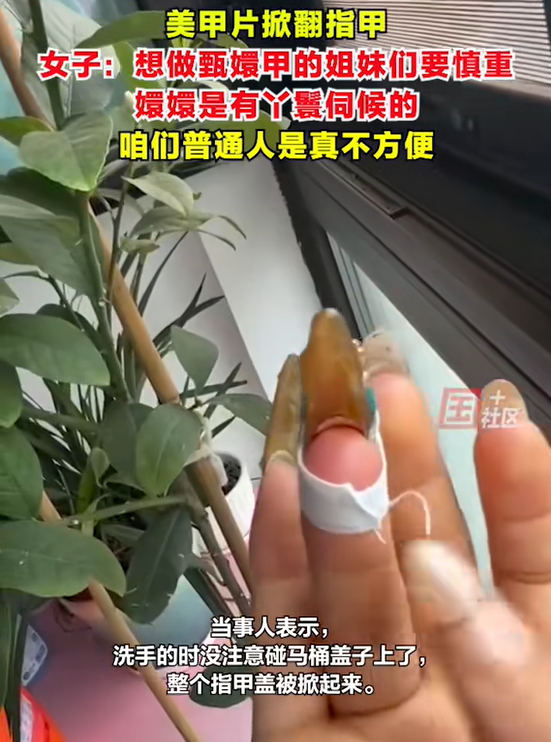 看着都疼!河南郑州,女子做了一个美甲,是最近流行的“甄嬛”甲,结果,她洗手的时候,碰到了马桶盖子,整个指甲都被掀翻,她痛得几乎要晕过去,她只能忍痛去美甲店卸掉,然后又去医院检查,当她晒出自己的美甲时,网友却并不同情!