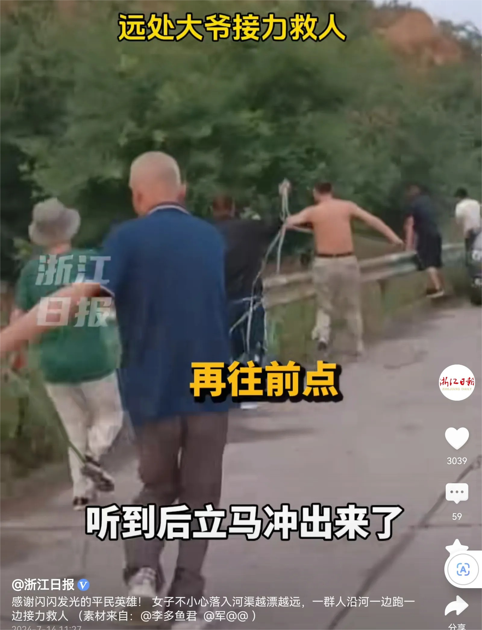 一女子不小心滑入河中了,旁边一个女子看到了,她就高声呼救。没想到,路过的所有人都赶过来救援。在短短的一二十分钟内,这位落水女子就被一群路人把她救了上来。 事故发生在7月13日的陕西宝鸡,当时有一女子正在河边,她目睹了那位女子滑的落水过程,看到后她就高声呼救,令她意想不到的是,她刚喊了第一声,开车的、路过的、纳凉的所有人都跑了过来。