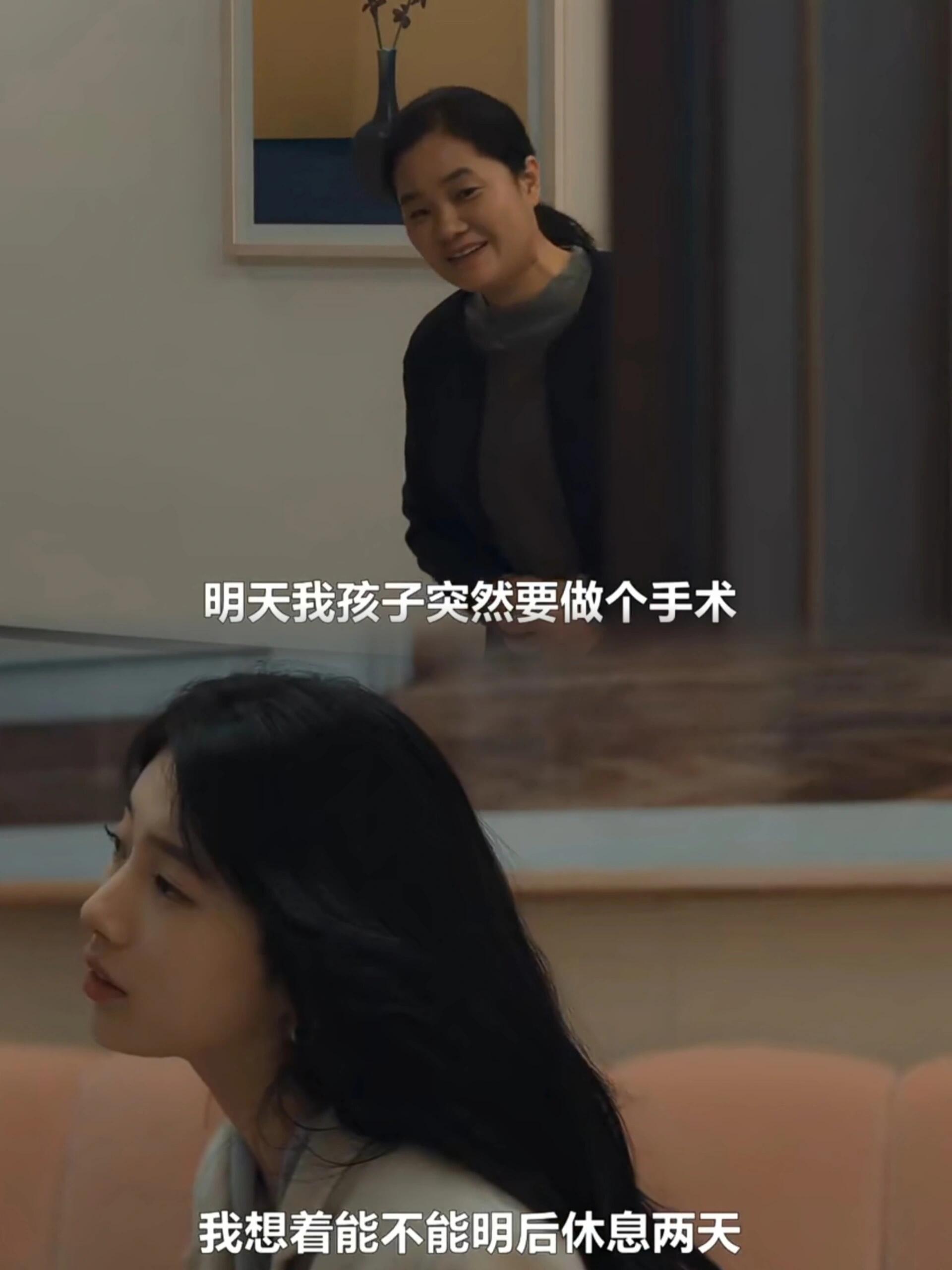 保姆过来,跟女主请假,初中生儿子明天做手术,想请两天假。