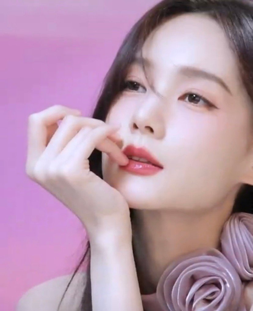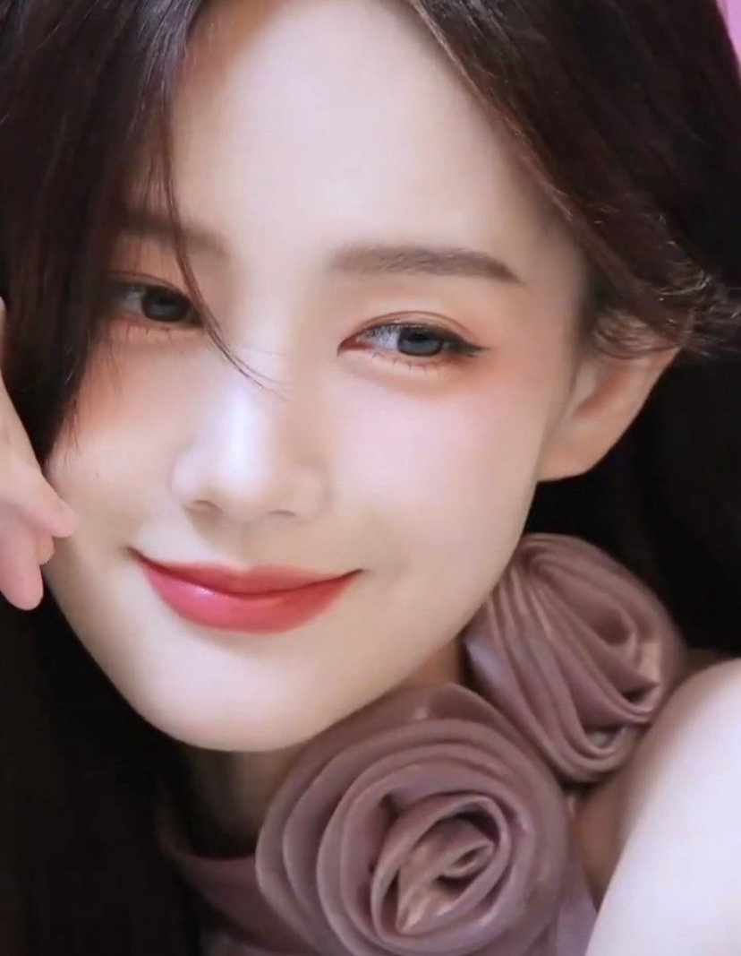 李一桐蜜桃妆,粉嫩温柔,眼影与口红相得益彰,仿佛人形水蜜桃般动人。清纯颜值加上细