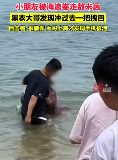 就在这千钧一发之际,一位身着黑衣的大哥,原本正在不远处悠闲地欣赏着海景。当他听到那声惊恐的呼喊“孩子被淹了”,他的心头猛地一紧,没有丝毫的犹豫,本能地朝着孩子的方向冲了过去。