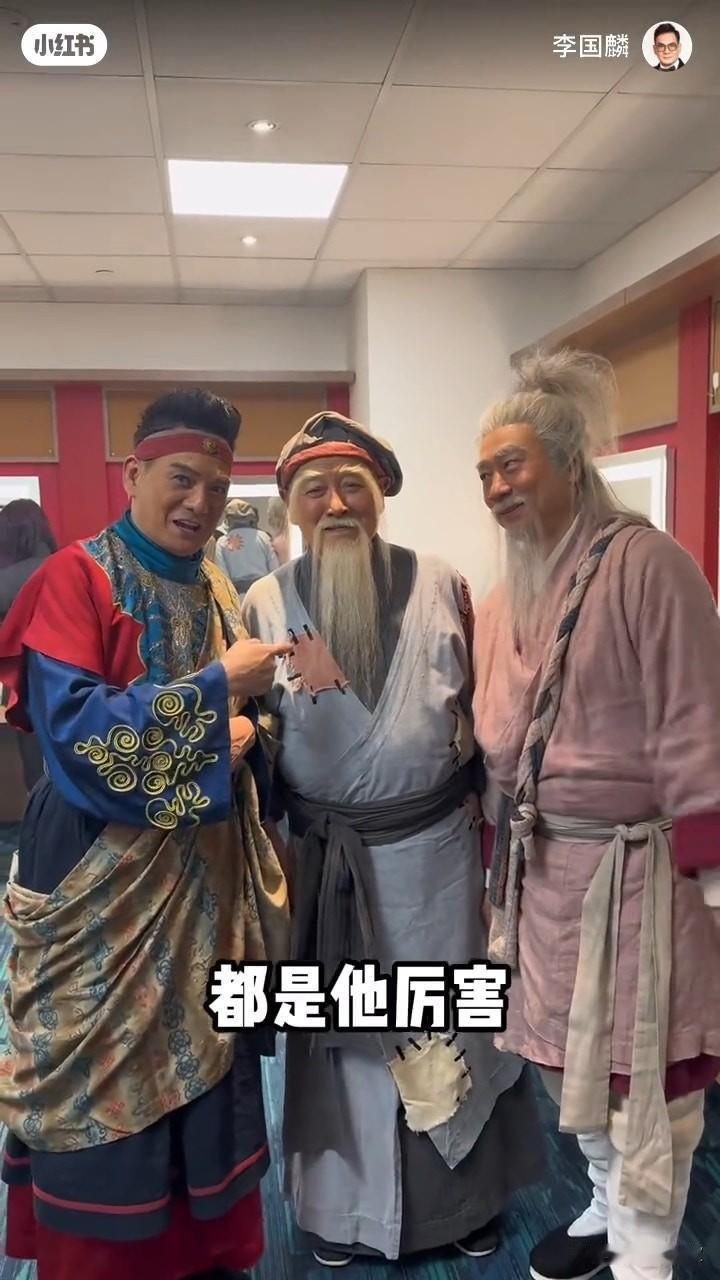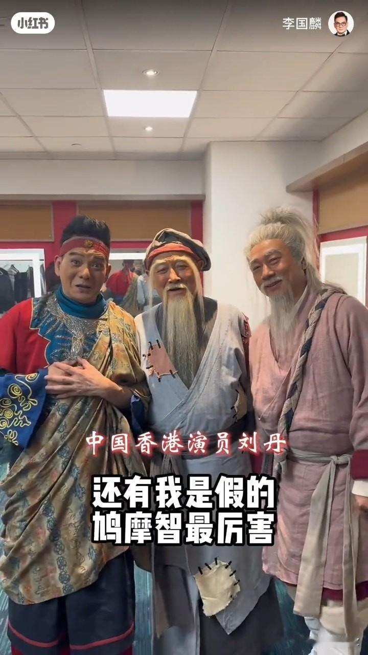 黎耀祥李国麟重现金庸角色勾集体回忆,最经典「洪七公」惊喜现身! 刘丹(丹爷)、李国麟及黎耀祥同样是好戏之人,但除此之外,好像联想不到三人有什麽关系,但资深剧迷就会知道,他们都曾演活过金庸作品里面的经典角色。 丹爷曾在1983年《射鵰英雄传之东邪西毒》、《射鵰英雄传之华山论剑》、《神鵰侠侣》、1994年《射鵰英雄传》及1995年版《神鵰侠侣》饰演「洪七公」一角;而黎耀祥则在《中神通王重阳》、1994年《射鵰英雄传》和《射鵰英雄传之南帝北丐》、及1995年《神鵰侠侣》饰演「周伯通」;至於李国麟则饰演1997年《天龙八部》的「鸠摩智」。 近日,李国麟在社交平台分享了三人聚首一堂的短片,三人再次穿起古装,以剧中经典角色造型示人,随即勾起网民集体回忆。其实近年转战内地市场的李国麟和黎耀祥,之前为了直播带货或拍片等,都曾分别再扮演过「鸠摩智」和「周伯通」,所以今次最令人惊喜的一定是丹爷的出现。 80岁的丹爷片中罕有再以「洪七公」造型示人,贴上长长眉毛,再加一撮长须将经典重现,令不少剧迷喜出望外。而三人的互动也十分搞笑,丹爷知道新一代未必认识他版本的「洪七公」,搞笑问道:「猜猜我是谁?」黎耀祥笑言:「刘德华!」李国麟则笑说:「周润发!」黎耀祥又指住李国麟说:「(他)郭富城!」没料丹爷突然抛出一句:「跳个舞来看看。」转数非常快。丹爷之後又问李国麟:「(我)老了是不是?」後者表示:「没有没有,一点都不老,但是比我老,哈哈。」可见大家非常老友。然而更多网民因能再次见到丹爷版的「洪七公」而感动,纷纷留言:「看到刘老爷子,我是心里一阵莫名酸楚。嘿,我看那部剧的时候,我才多大,无数回忆涌上心头」、「啊啊啊七公啊!再看到这个造型想哭」、「很喜欢刘老爷的洪七公」、「满满的回忆」。#夏日生活打卡季#