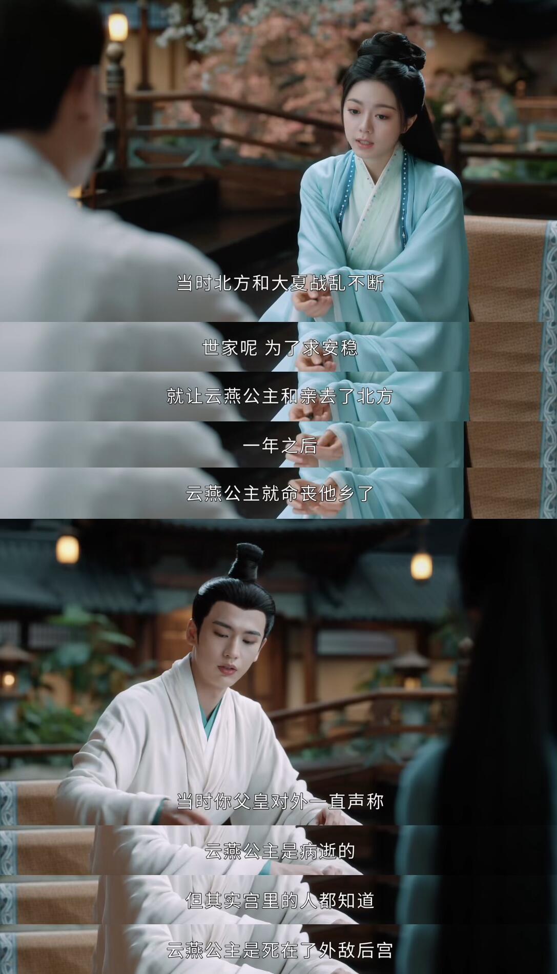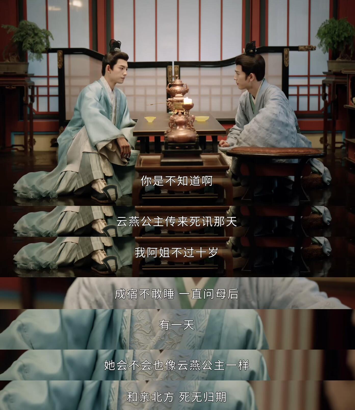 重活一世的公主感伤弟弟即将要娶自己不喜欢的女子,裴文宣前来开导,说出上一世时太子曾经给他说的想要北伐的原因,因为看到其他公主远嫁敌国过的悲惨生活后,不忍姐姐受苦,才决定北伐!