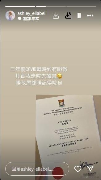 38岁前TVB小花离巢前已进修舖路转行,曾陷出轨人夫风波遭雪藏! 现年38岁的朱智贤凭参选2013年港姐入行至今十年,去年完成新剧《企业强人》拍摄後,不再与TVB续约正式外闯,活跃於社交媒体,主持工作根一个接一个发展不俗。不过原来离巢前,朱智贤已铺定路,在香港大学专业进修学院修读营养学高等证书课程。 朱智贤昨日(15日)在社交平台撰长文,并晒出多张上月庆祝38岁生日的照片,并留言表示:「今年生日过得很幸福,感受到满泻的爱,好耐都无试过咁多人同我庆祝生日,真心好多谢大家都咁锡我咁有我心,令我觉得自己系值得被爱锡的。不知为什么今年特别受宠,认识了好多新朋友,有啲只系见过一次面也很喜欢我,所以我会继续做最真的自己。幸福不是必然,所以我会好珍惜大家,来年希望大家继续宠幸我。」 朱智贤续指:「啱啱过去呢一年作出了很多新尝试同改变,发觉原来改变也是一个很不错的选择,(虽然每次做选择都会好纠结),继续『相信就会发生』的信念。」朱智贤之後在社交平台发文,透露在2021年1月已取得香港大学专业进修学院修读营养学课程,并已取得高等证书:「三年前COVID嘅时候冇嘢做,其实我走咗去读书,唔执屋都唔记得咗lol」。 朱智贤自2020年4月被传媒拍到与人夫黎振烨驾车到偏僻山头偷食心形蛋糕,爆出「偷食」事件後,人夫男主角黎振烨事业插水,但事後朱智贤获男友谢东闵护花陪同开记者会。事件爆出後,谢东悯惨被网民封为「马国明2.0」,然而两人亦携手度过难关,走出偷食风波。#夏日生活打卡季#