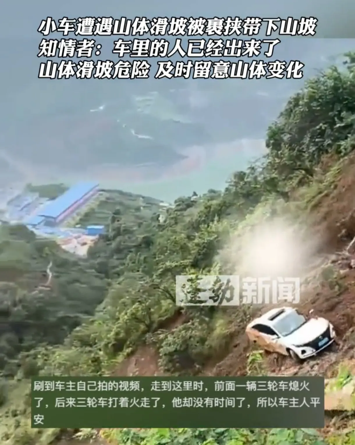 据目击者 称,滑坡如猛兽来袭,车辆瞬间被吞噬,情况万分危急。幸运的是,车内人员反应迅速,及时脱险,避免了悲剧的发生。救援队伍迅速响应,经过紧张搜救,确认车内人员已全部安全撤离。