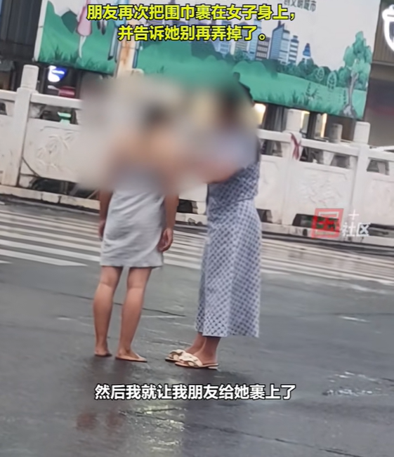 辣眼了!河南洛阳,一名女子来到大街上,毫无征兆的将衣服脱光,就这样赤裸全身的站在大街中央,被众人围观和拍摄,就在这时,一位好心人出现,拿来了一条围巾,跑过去给女子裹上,并叮嘱她千万别掉了!而女子随后的反应,让人太心疼!