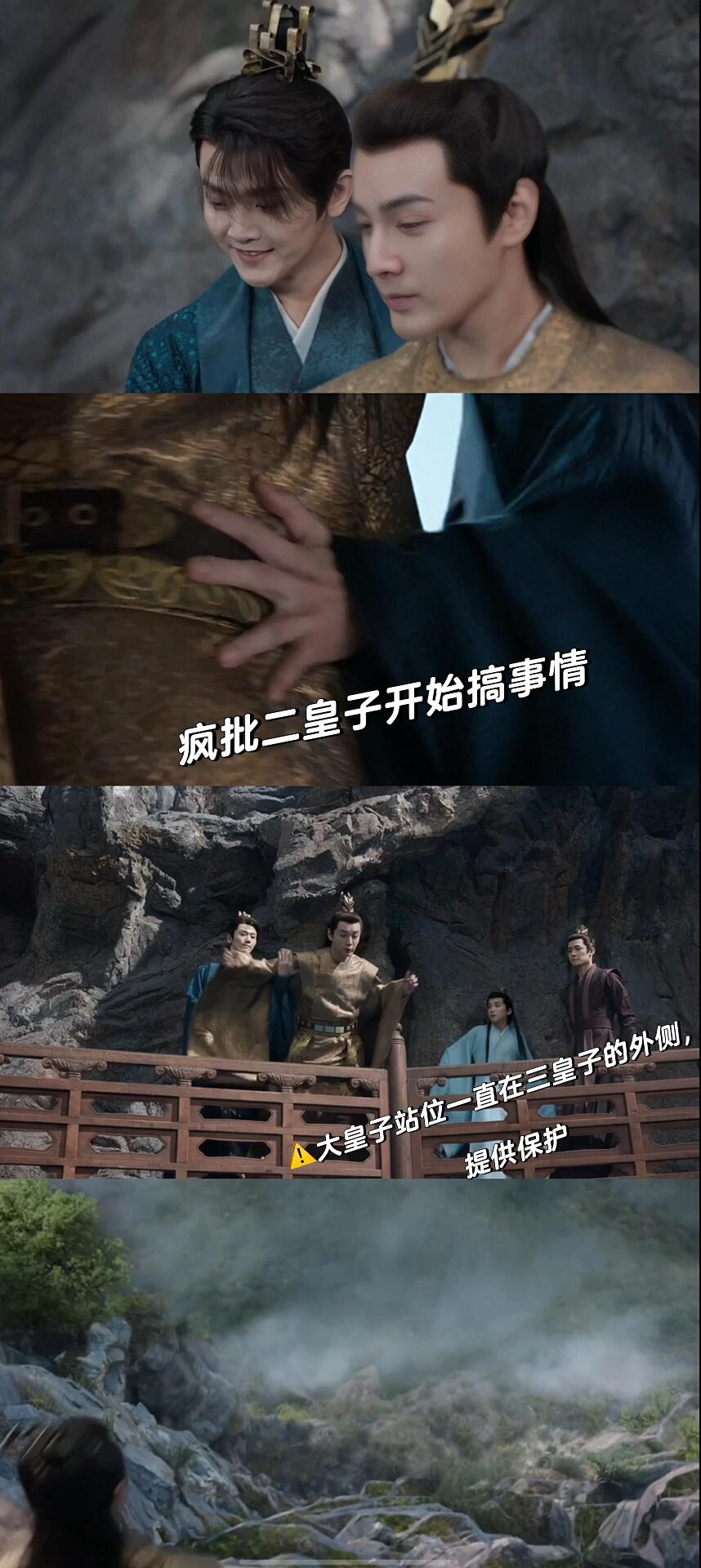 大皇子,二皇子,太子,三皇子一起走在悬空庙悬崖的廊上,一边是峭壁,一边是深不见底的山谷,危险重重,道路狭窄,仅容一人通过,就好似那条通往帝王宝座的道路。