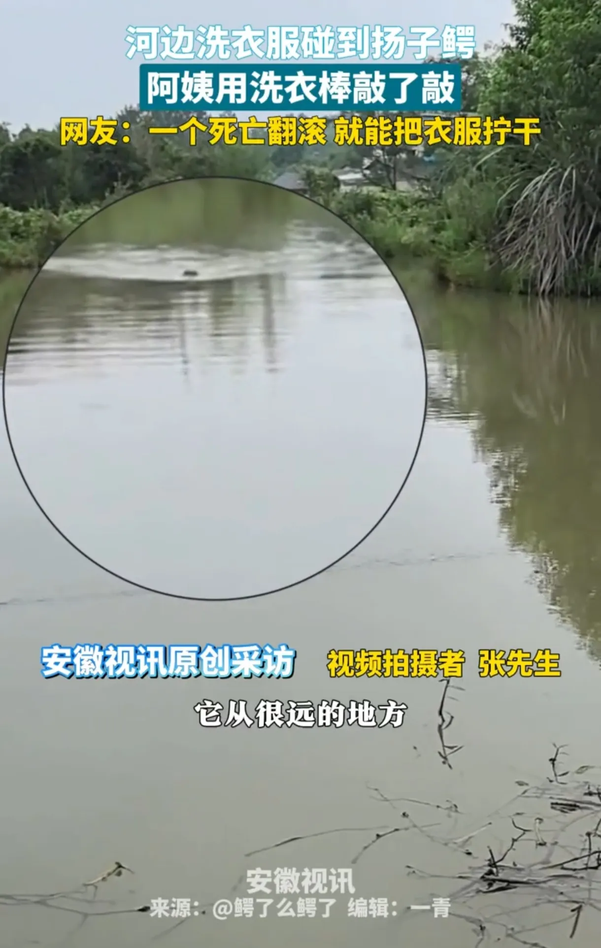 河边奇遇!阿姨洗衣棒“逗”扬子鳄,萌翻网友!