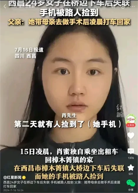 太揪心了,24岁漂亮女孩凌晨一点打车回家,她却在离家有一段距离的地方下了车。没想到下车后她就失联了,到现在已经三十多个小时了,没有任何消息。