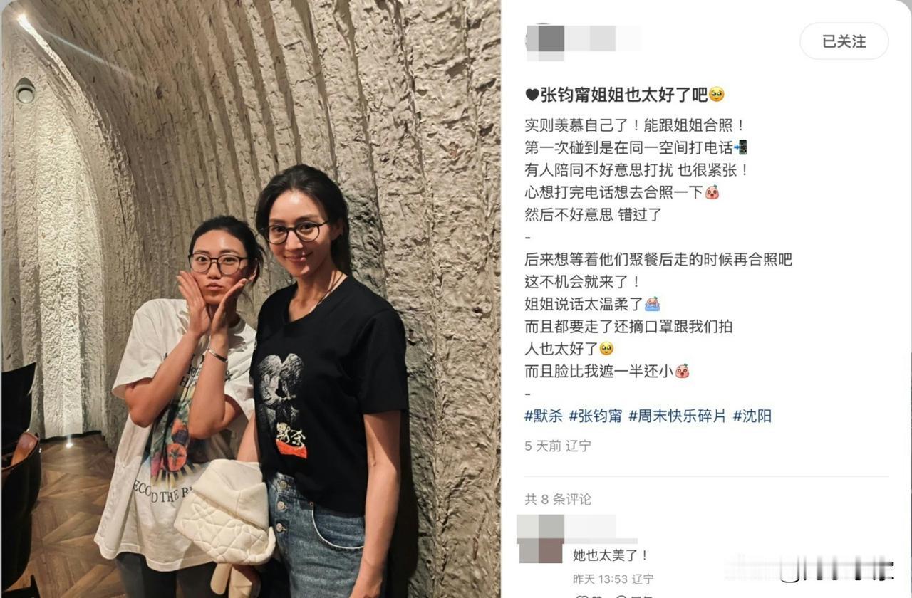 台湾气质女神渖阳路演被捕获,贴心举动俘虏网友:姐姐也太好了吧! 现年41岁的张钧甯近年主力内地发展,曾参与《武媚娘传奇》、《少年四大名捕》、《如懿传》及网剧《唐人街探案》系列等而拥超高人气:除了演技好外,她凭着漂亮的面孔,再加上清新脱俗的气质,成功圈粉。 剧集之外,张钧甯近年在电影方面也有不错成绩,最近由她和吴镇宇主演的新片《默杀》更加是非常厉害,上映头3日已累积逾一亿人民币票房,片中饰演被霸凌者学生家长的她,将身为母亲无助及心痛的情绪演绎得淋漓尽致,获赞演技大爆发。 票房成绩亮丽当然是很大一支强心针,作为女主角的张钧甯也做好演员本份,连日来为电影四出宣传,日前她到渖阳路演时被粉丝捕获,其一个举动令对方感到非常贴心。该网民事後在社交平台以「张钧甯姐姐也太好了吧」为题,兴奋分享说:「姐姐说话太温柔了,而且都要走了还摘口罩跟我们拍,人也太好了」。相中所见张钧甯打扮简约,穿上电影T恤配牛仔裤,虽然戴着眼镜及仅化上简约淡妆,但依然非常靓女,皮肤又紧致,状态极好。网民大赞:「羡慕你~钧甯很贴心摘口罩合影」、「她也太美了吧!」#夏日生活打卡季#