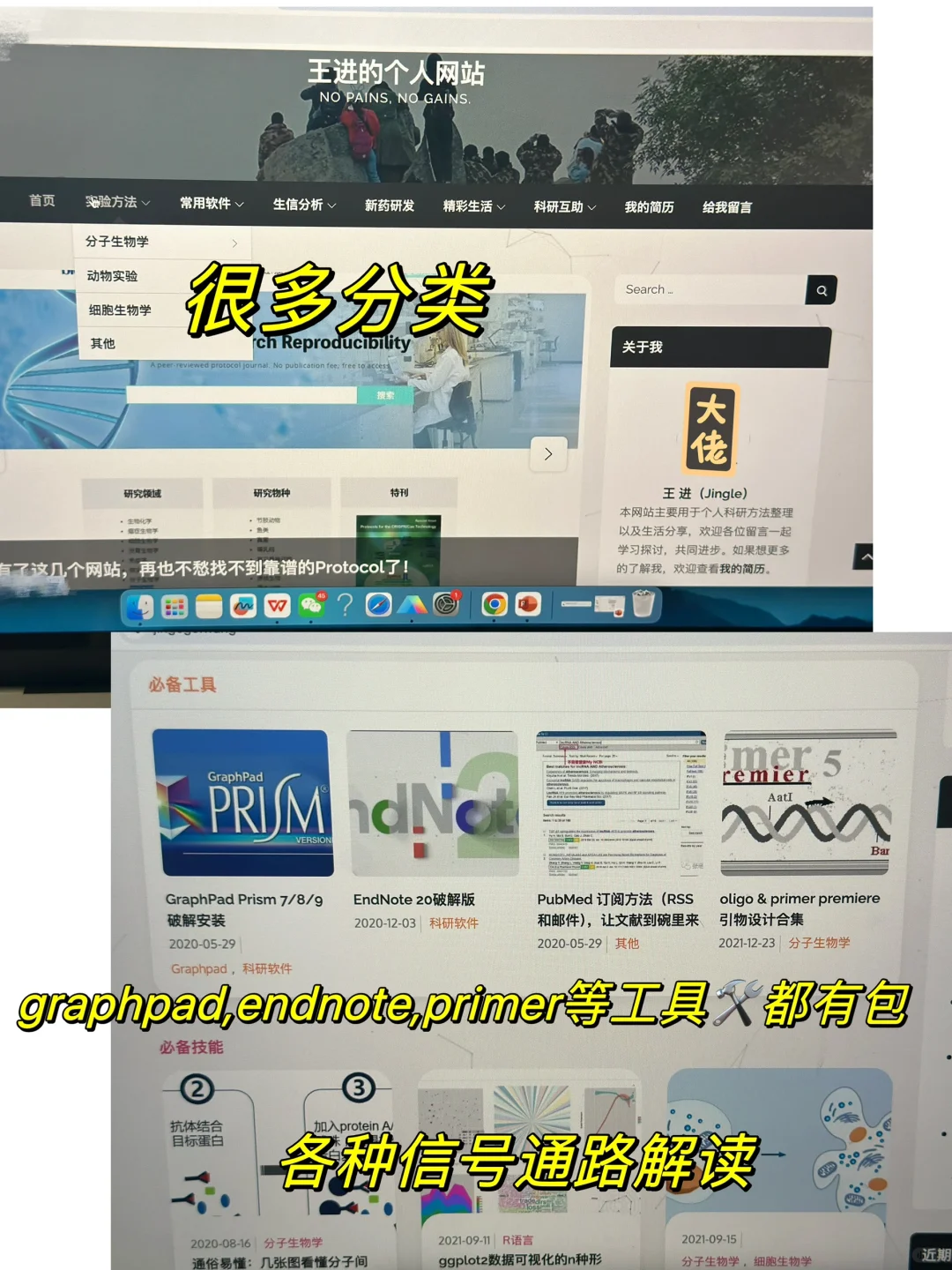 ➡️王进的个人网站❗️ 点进去首先是可以看到各种分类,图5标签里也能直接点击查看自己想看的。 ✅实验方法各种protocol和常见问题解决方案: 例如流式染色,原代细胞培养,克隆形成拍照,血管生成实验,类器官培养,巨噬细胞分化,稳株构建等等…… ✅科研工具,常用软件🛠️的安装包,用法都有。 例如:imageJ,spss,endnote,primer等…… ✅还有各种生信分析相关干货… ✅各种动物实验操作要点,分类,干货… 例如常见小鼠实验操作技能(给药or抓取…),单细胞悬液的制备,皮下肿瘤注意要点,瘤体的测量和计算等等…… 等等~ ps:精彩生活栏看到了王进老师的妻和娃,好甜好好磕,感觉是一个又顾家又厉害的大佬…[黄金薯R]