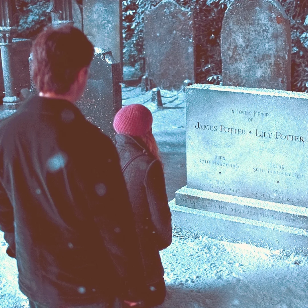 1997年,海德薇、疯眼汉牺牲,哈利第一次回到戈德里克山谷,见到父母的坟墓,第一次与他们重逢[刀R]