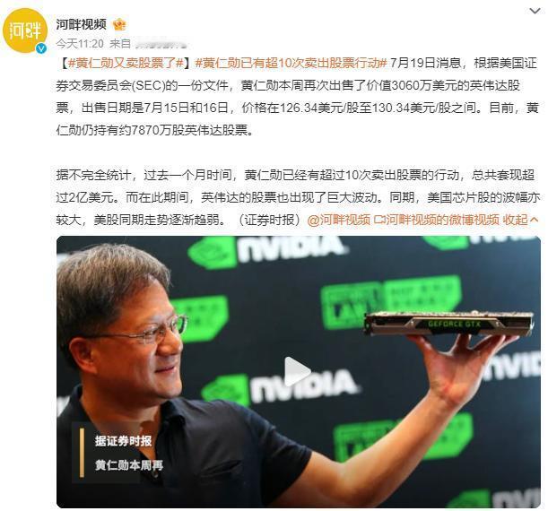 “我的投资人朋友,都在清仓英伟达”“黄仁勋又卖股票了”这两则消息,股民作何感想?