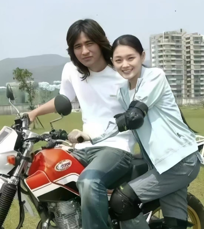 2004年,正在拍拖的周渝民和大S,一起骑摩托的合影。镜头下的周渝民有着深邃的眼神和高挺的鼻梁,帅气迷人,发型时尚。大S皮肤白皙,长相甜美,充满青春活力,二人同穿白色T恤,搭配牛仔裤,宛如一对璧人。 周渝民和大 S 是因为一起拍摄电视剧《流星花园》而相识的。在剧中,周渝民饰演的花泽类和大 S 饰演的杉菜有很多对手戏,两人因此擦出爱情的火花。但这段甜蜜的感情最终以分手告终。